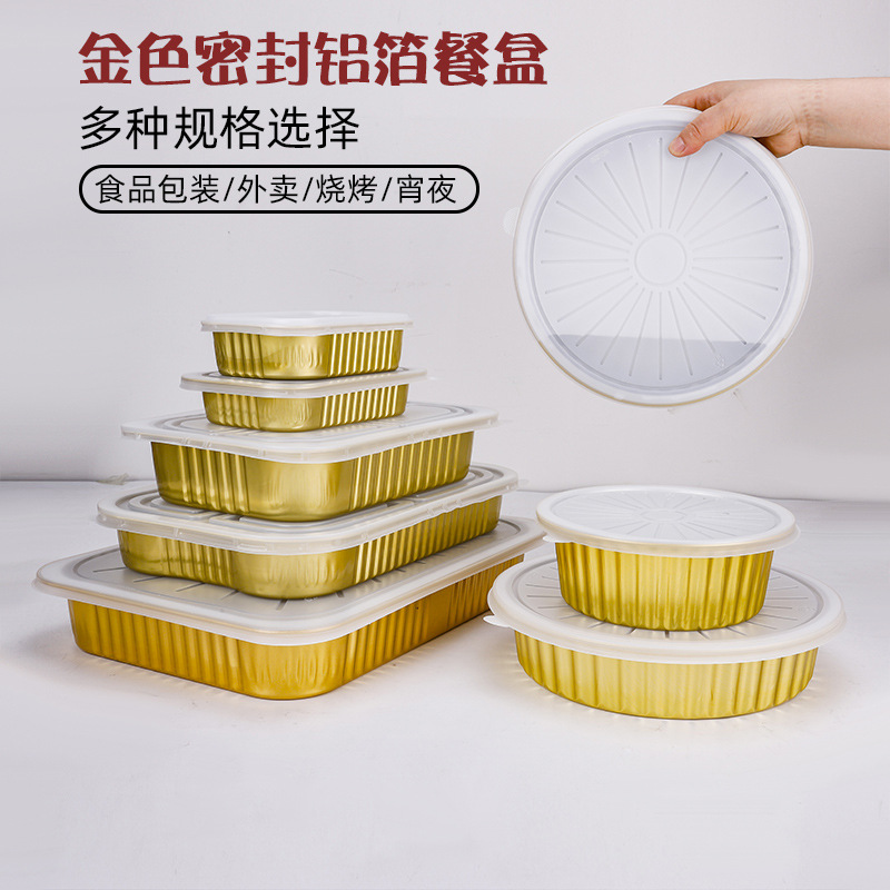 Золотая алюминиевая фольга жестяная коробка одноразовая упаковка коробка для еды с крышкой пищевая высокотемпературная приготовленная на пару барбекю специальная реклама