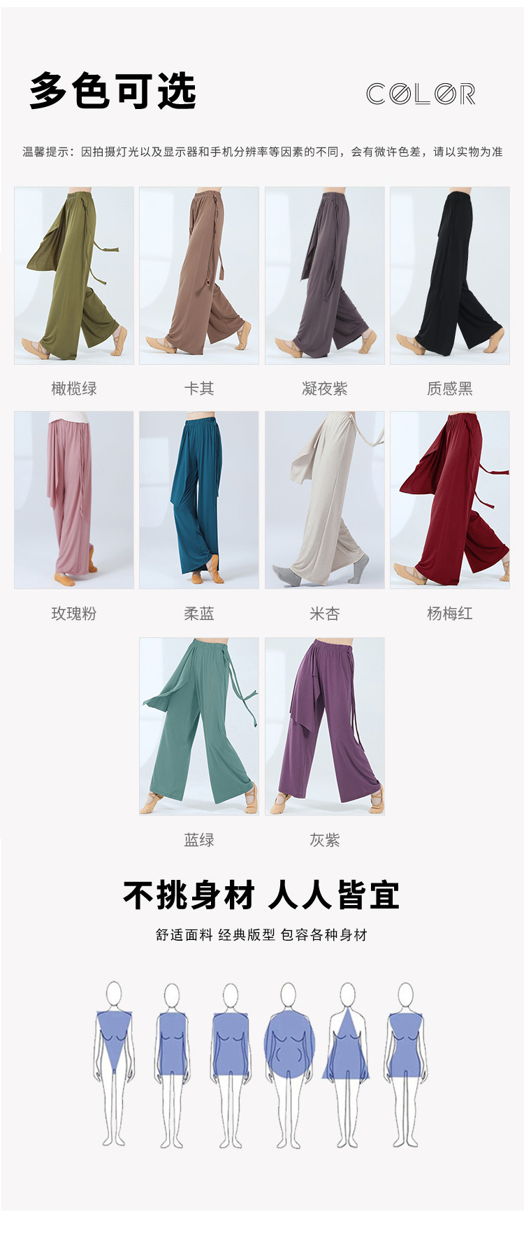 Розовый порошок; Мягкий синий; Оливковый зеленый; Хаки; Нин Е фиолетовый; Черная текстура; Рис абрикос; Ян Мэйхун; Синий зеленый; Серый фиолетовый
