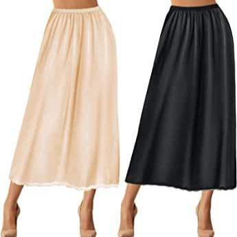 外贸夏季新款女士缎面拼接蕾丝内衬裙防透防走光打底裙花边半身裙
