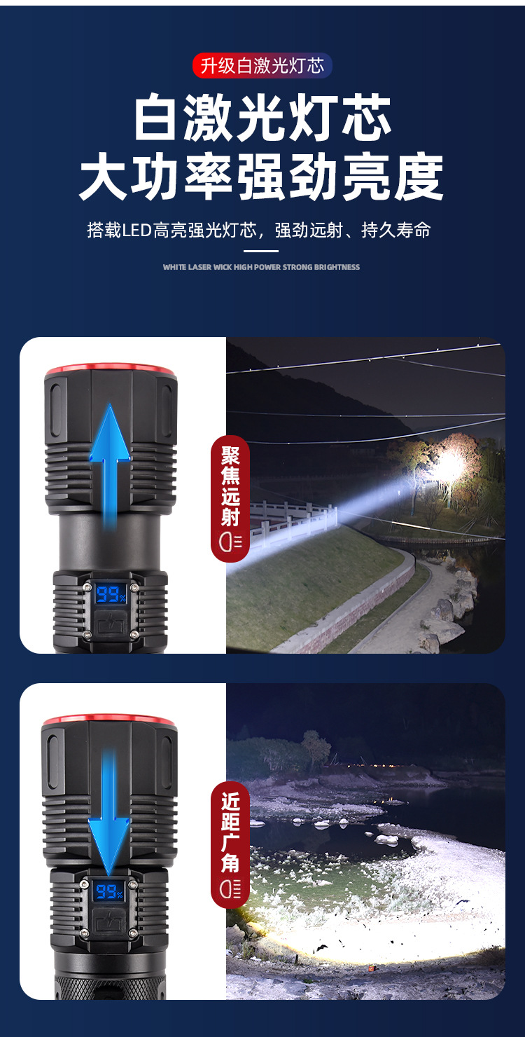 2023 новый фонарик лазерный ультра-яркий перезаряжаемый уличный сильный свет дальнего действия цифровой электрический дисплей мощный алюминиевый сплав