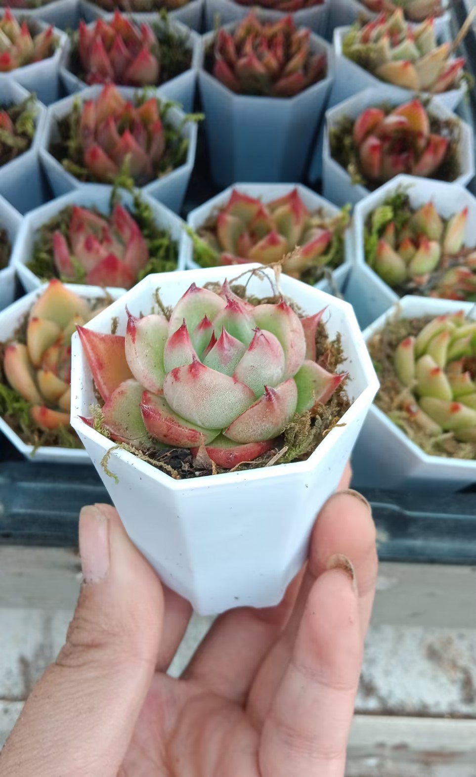 【5см】Белый восьмиугольный горшок с суккулентами