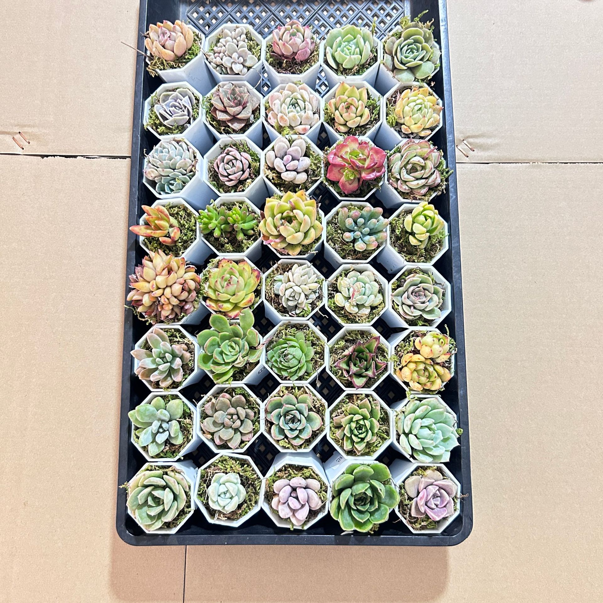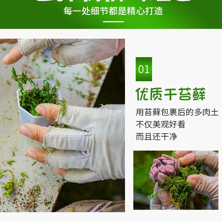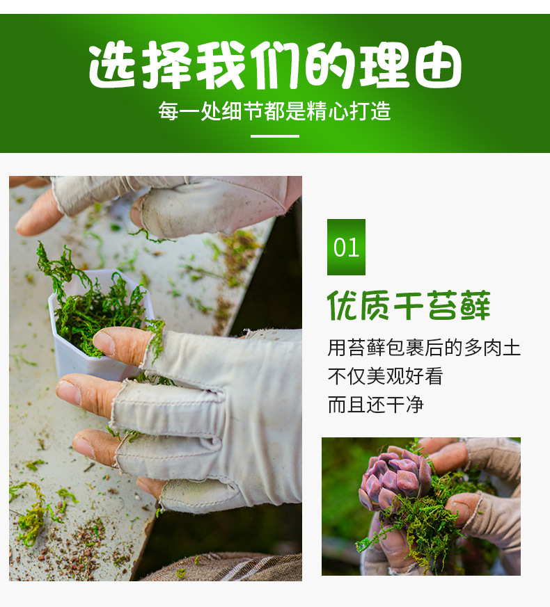 Качественный мох + суккуленты + пластиковый восьмиугольный горшок белого цвета.