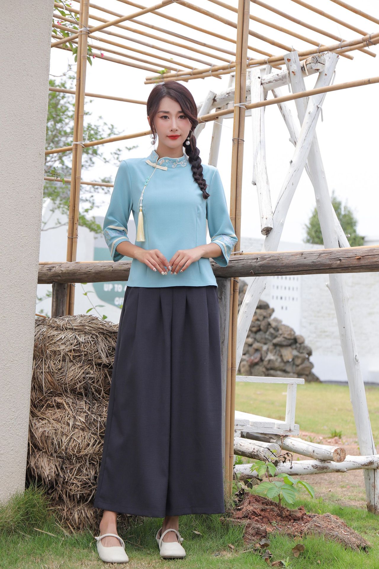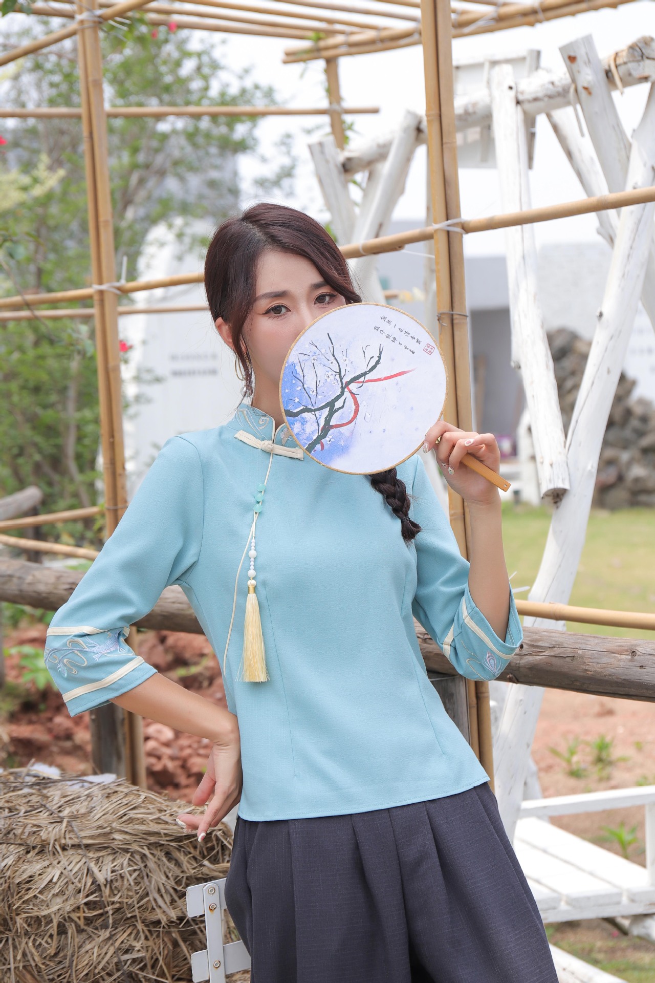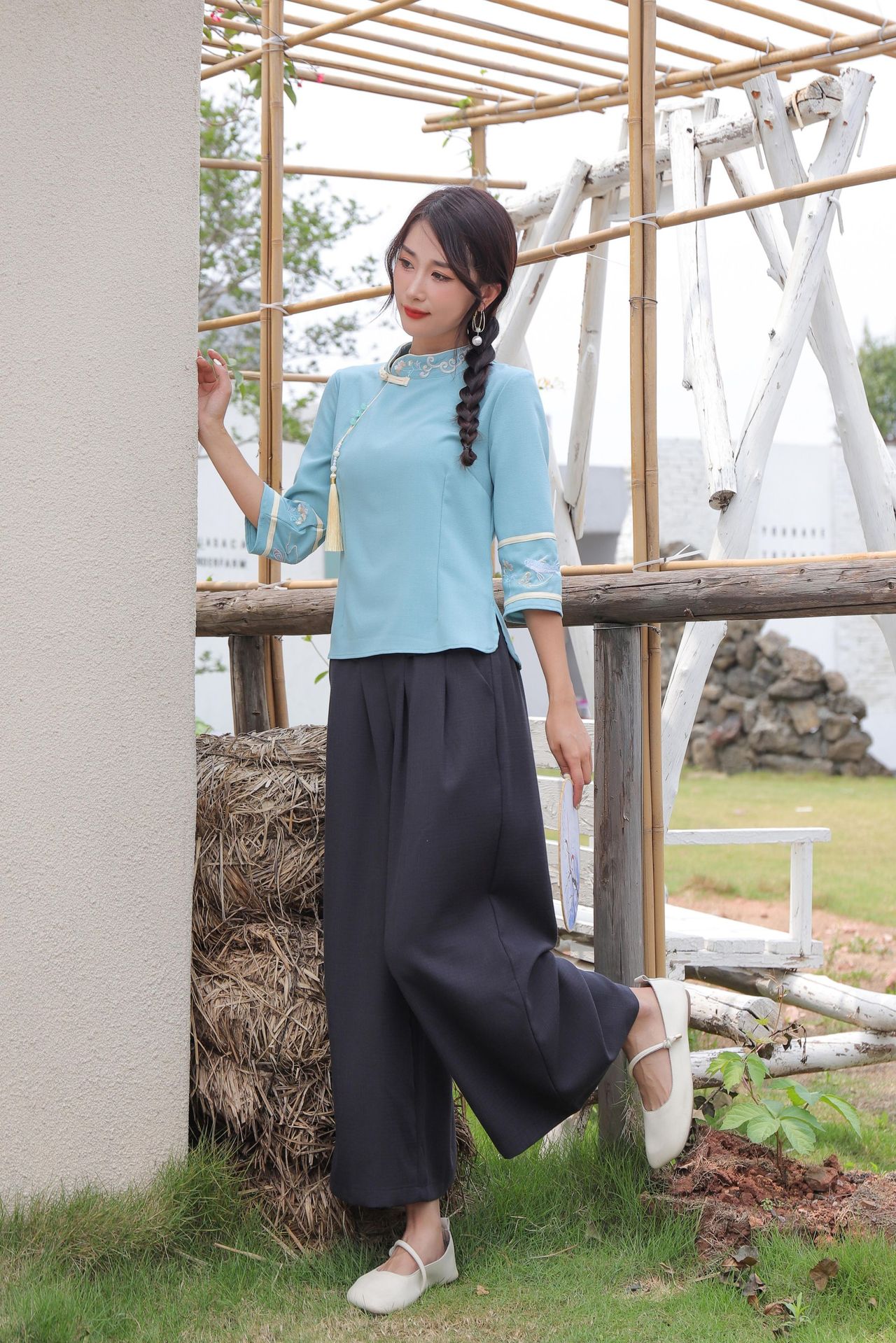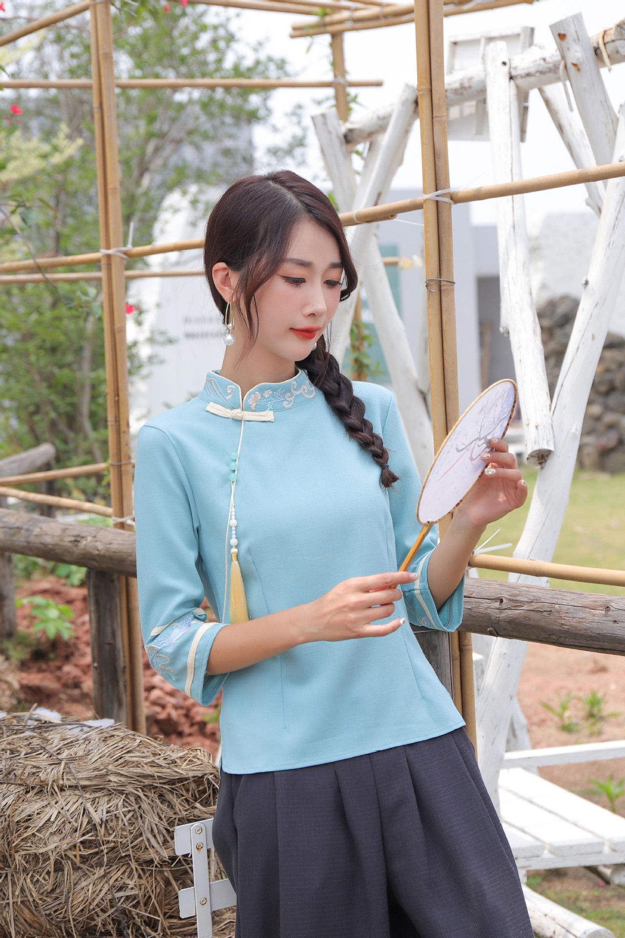 Ретро-песня улучшенный диагональный воротник, пряжка, темперамент, семиочный рукав, маленький топ ретро, китайский стиль, китайский стиль, костюм, чай и cheongsam