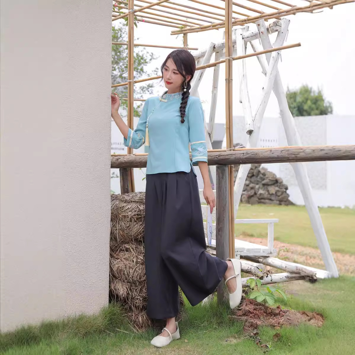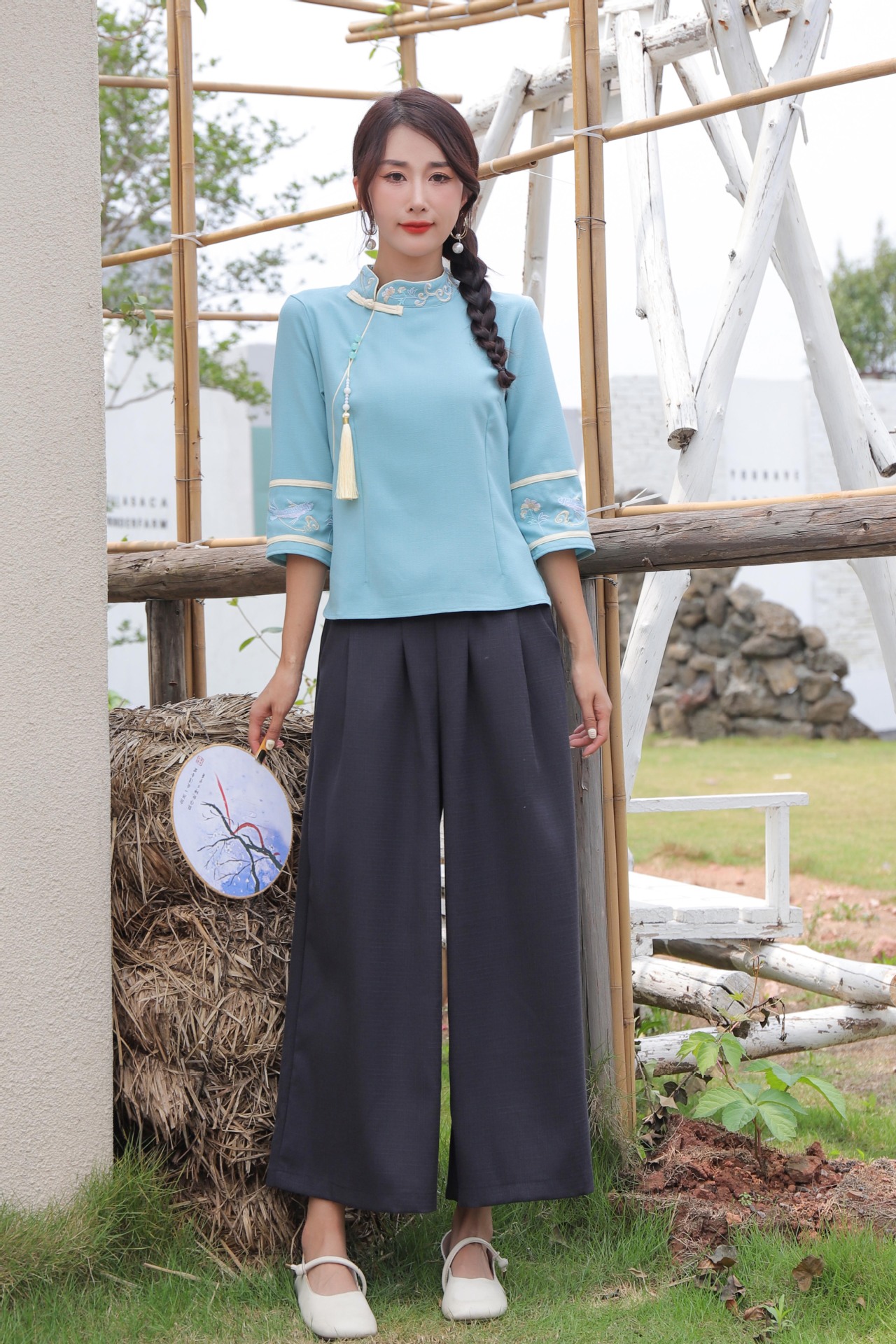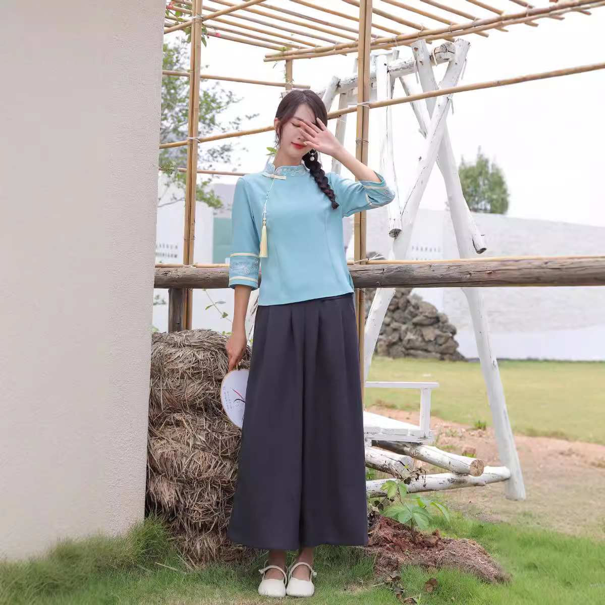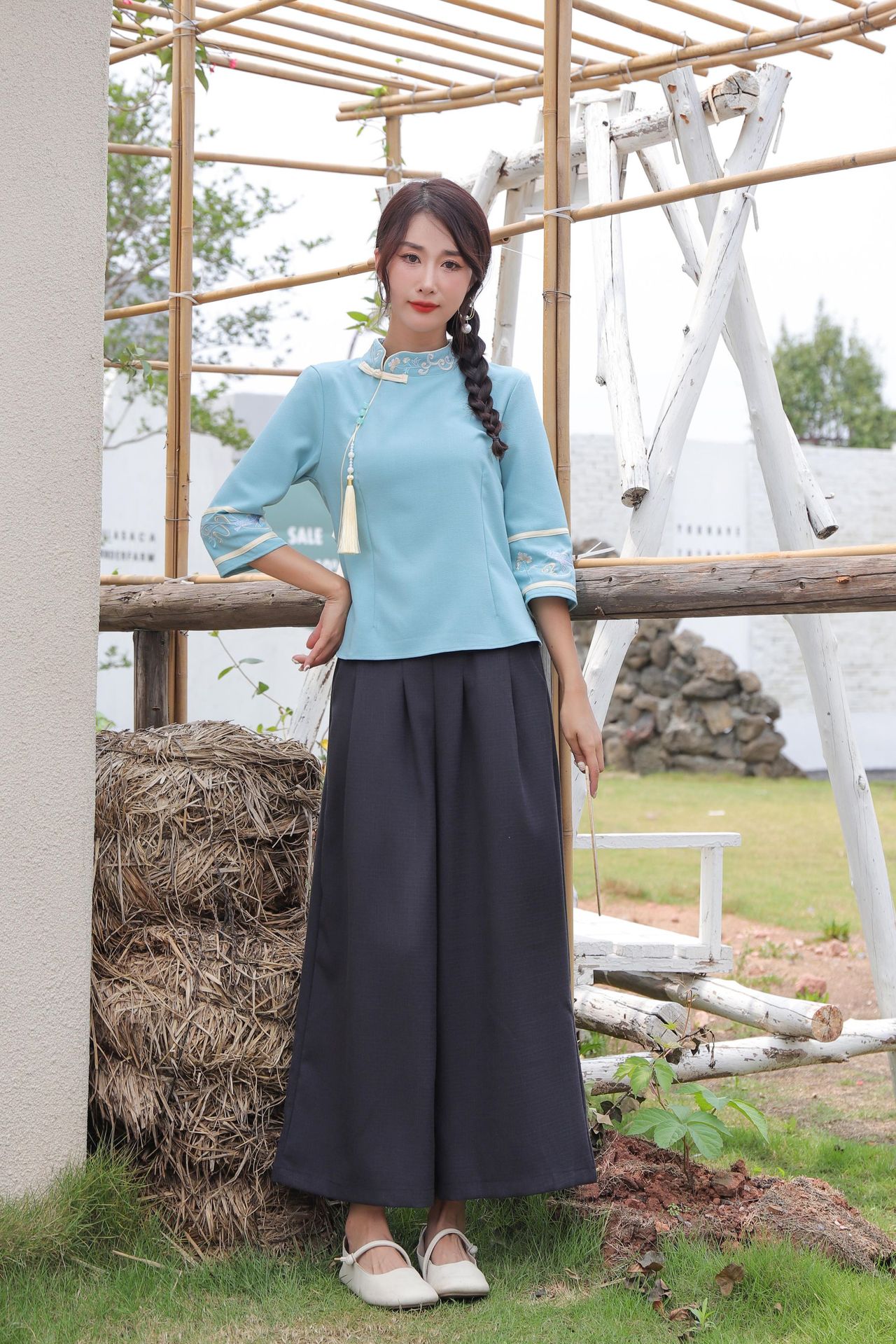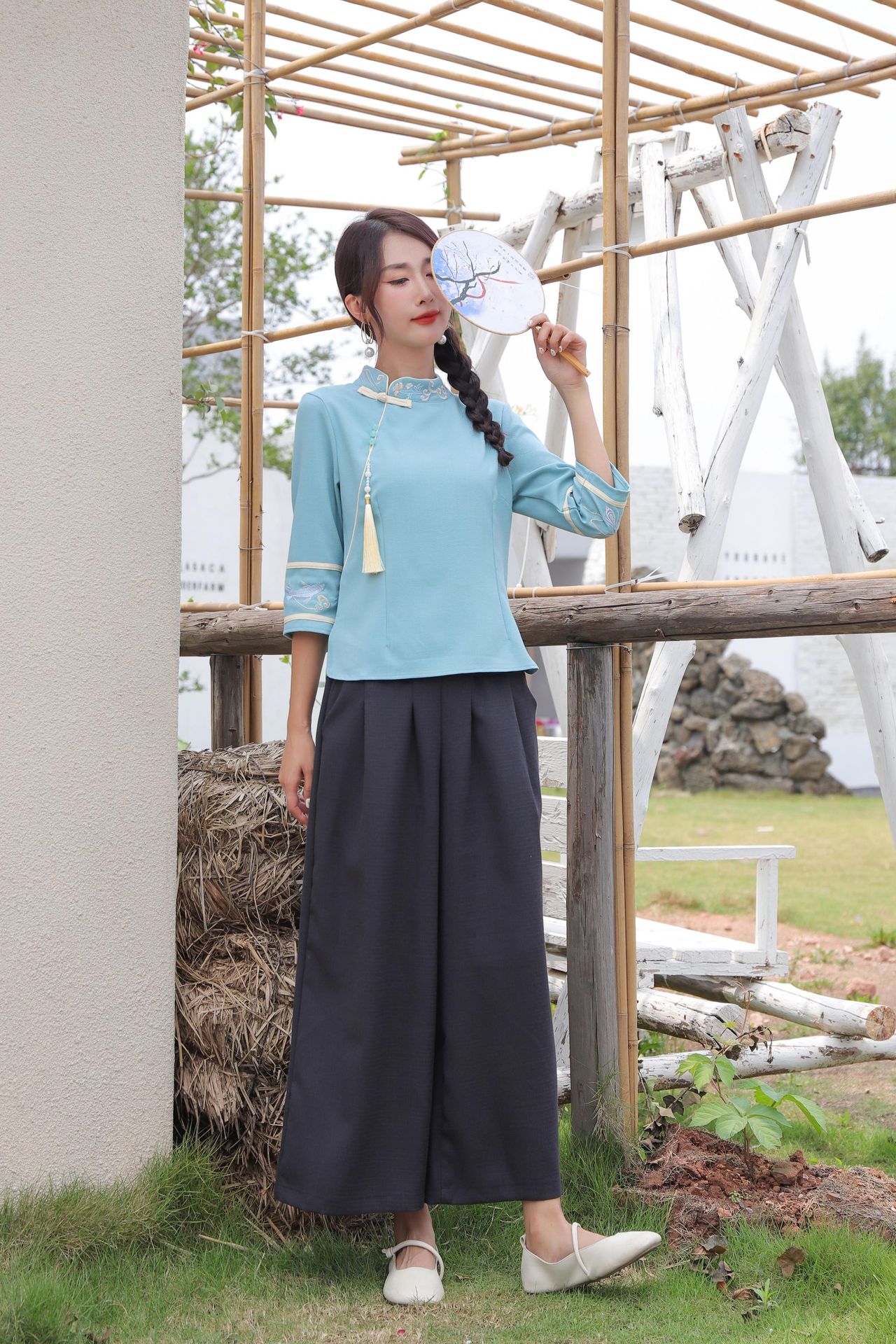 Ретро-песня улучшенный диагональный воротник, пряжка, темперамент, семиочный рукав, маленький топ ретро, китайский стиль, китайский стиль, костюм, чай и cheongsam
