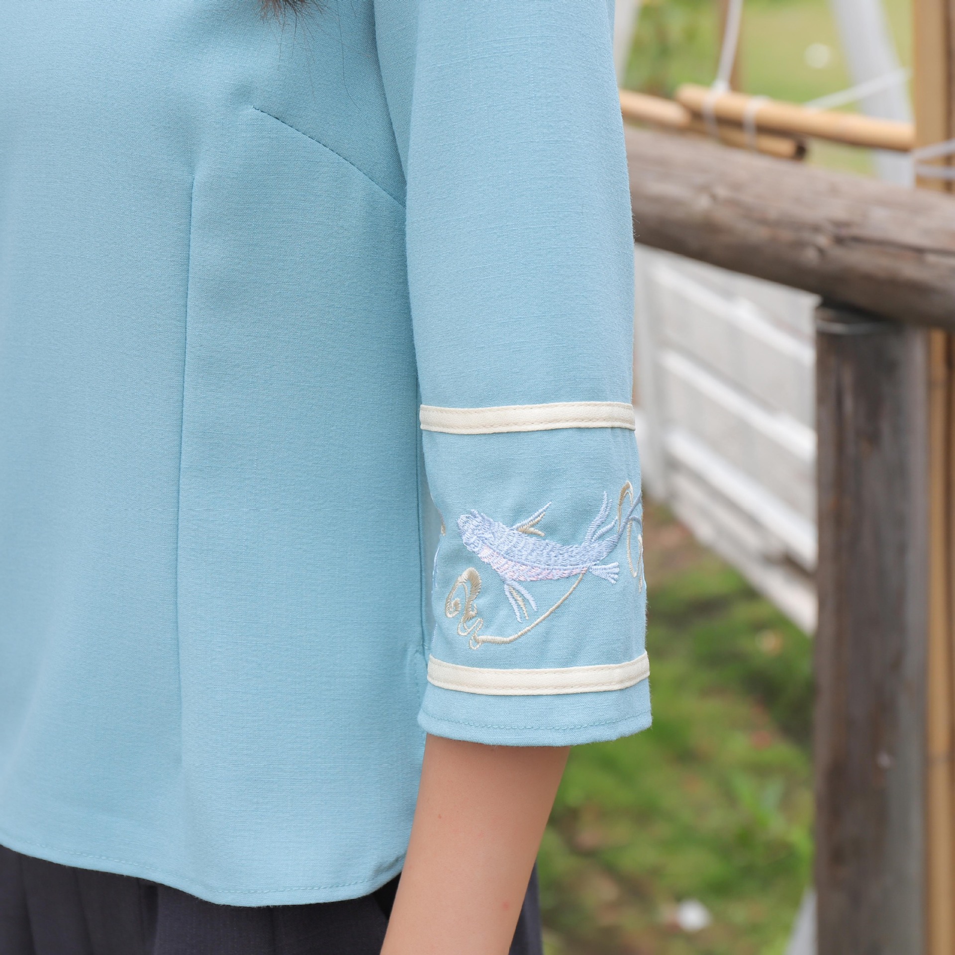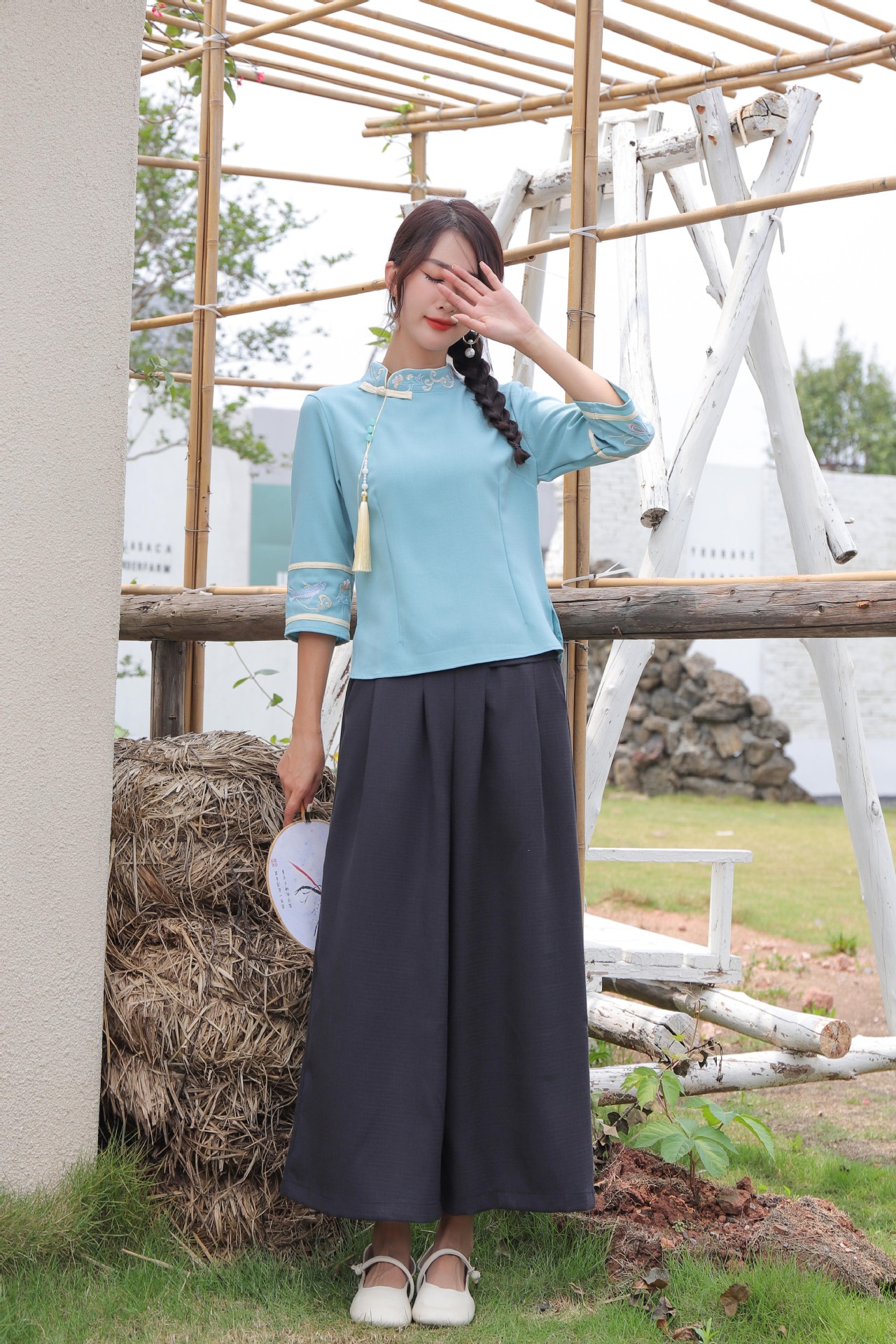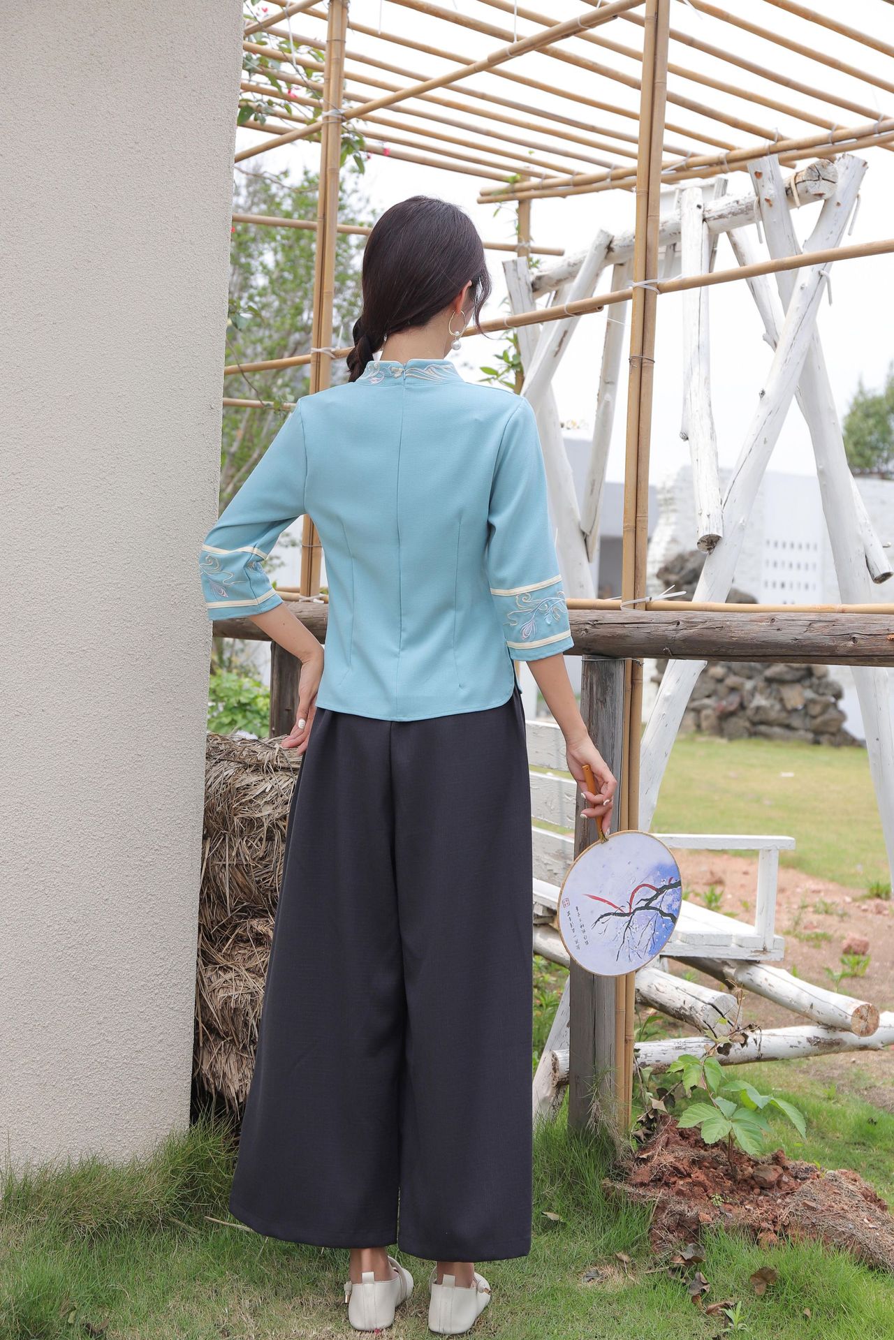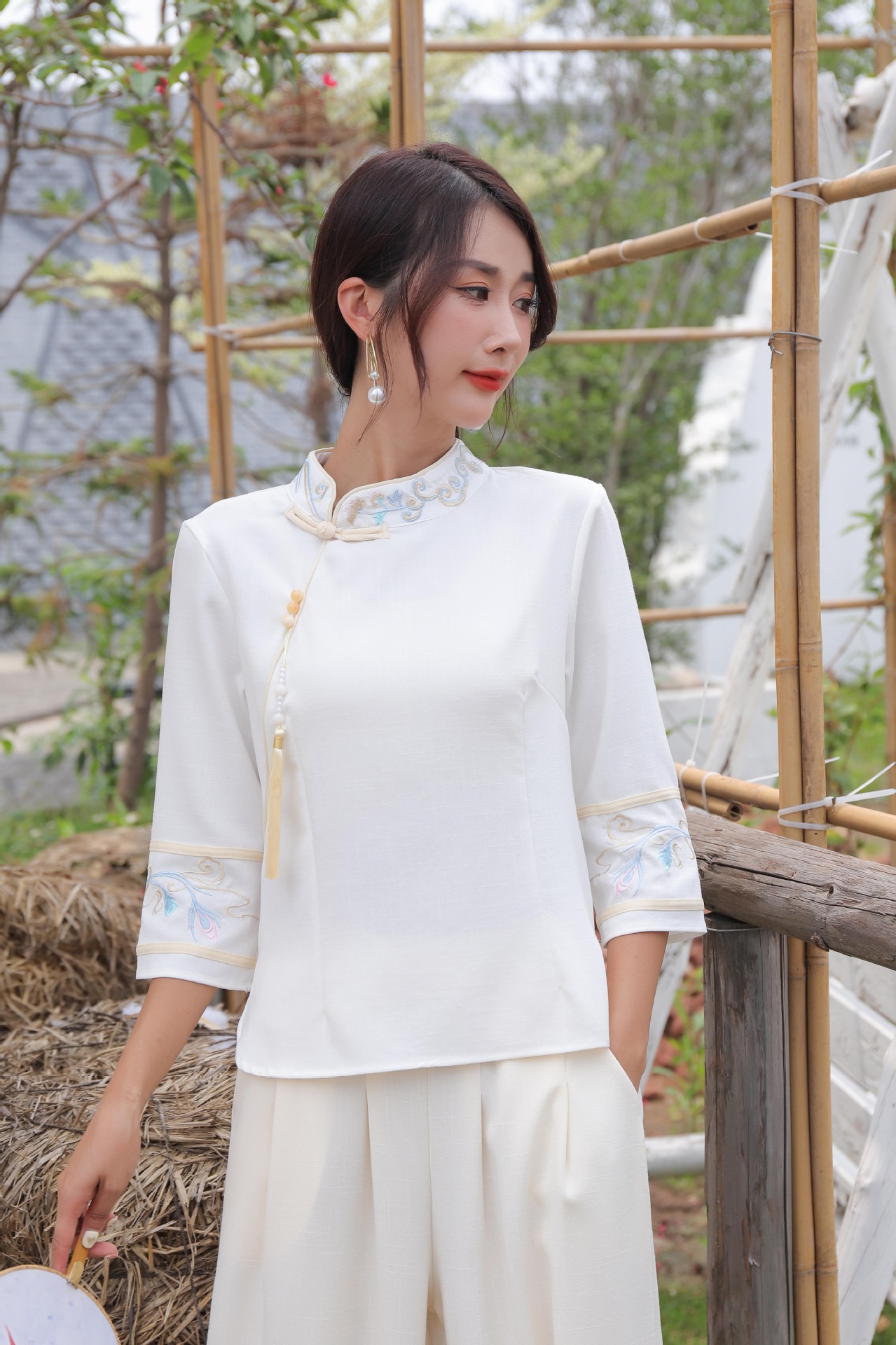 Ретро-песня улучшенный диагональный воротник, пряжка, темперамент, семиочный рукав, маленький топ ретро, китайский стиль, китайский стиль, костюм, чай и cheongsam