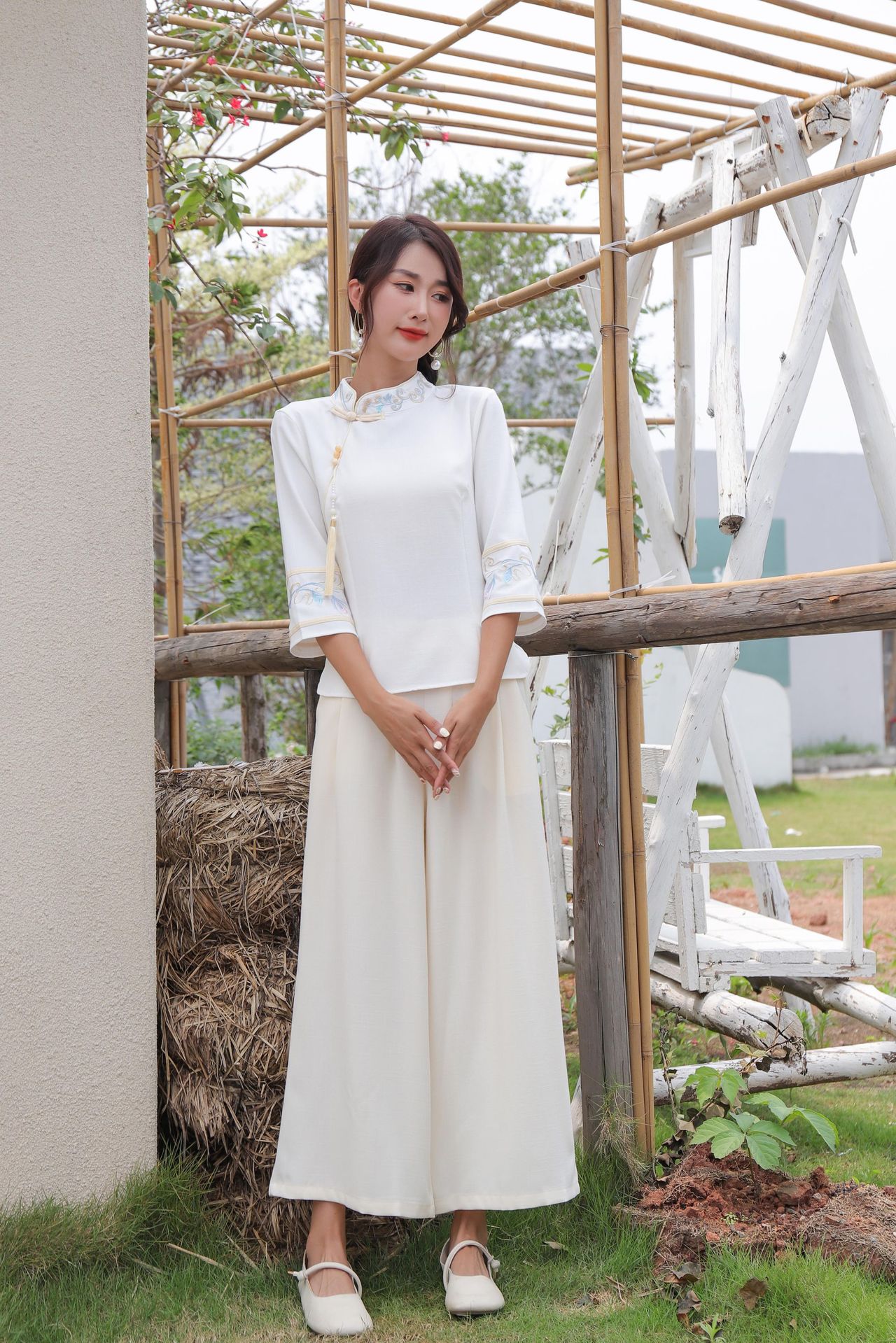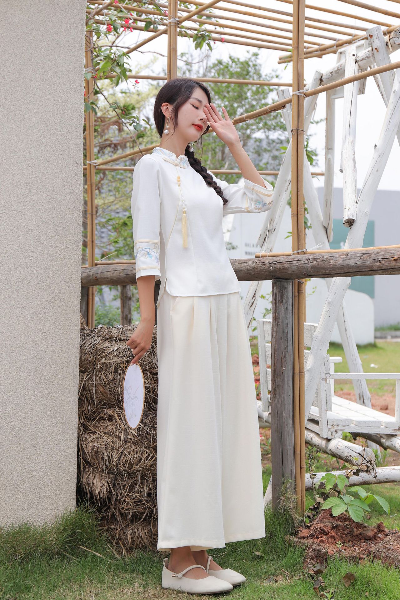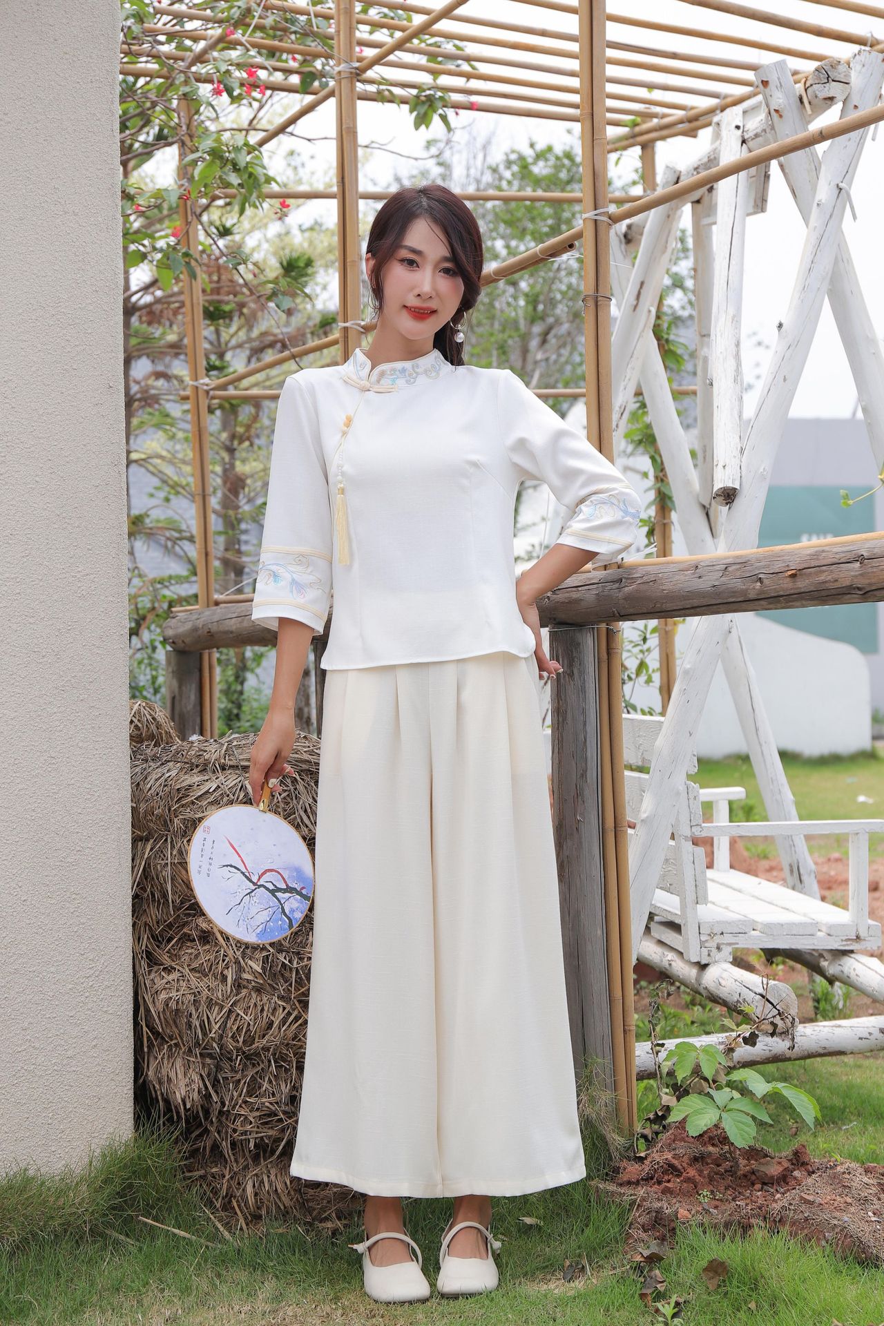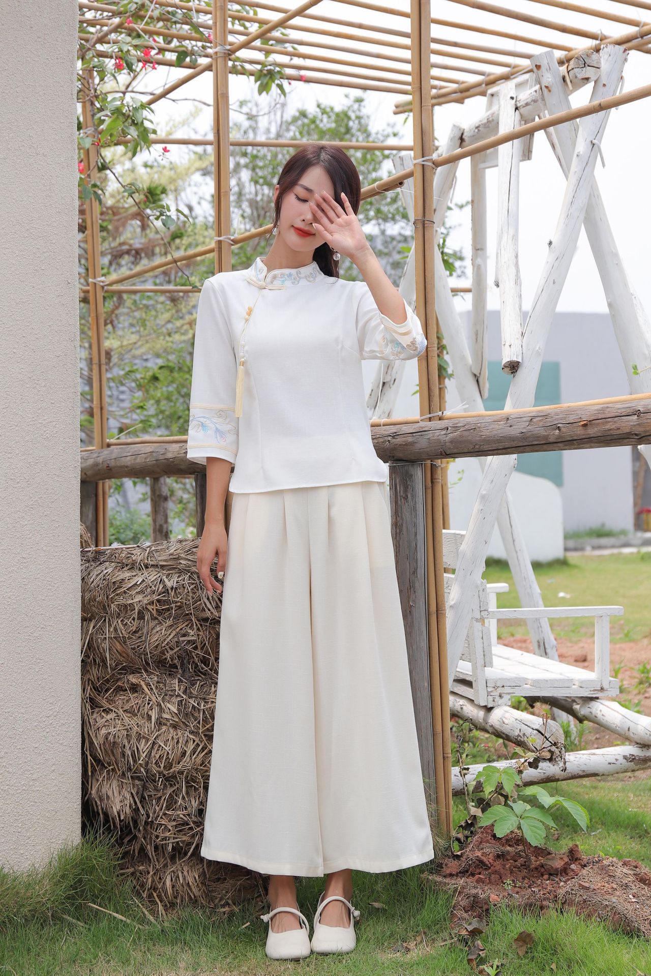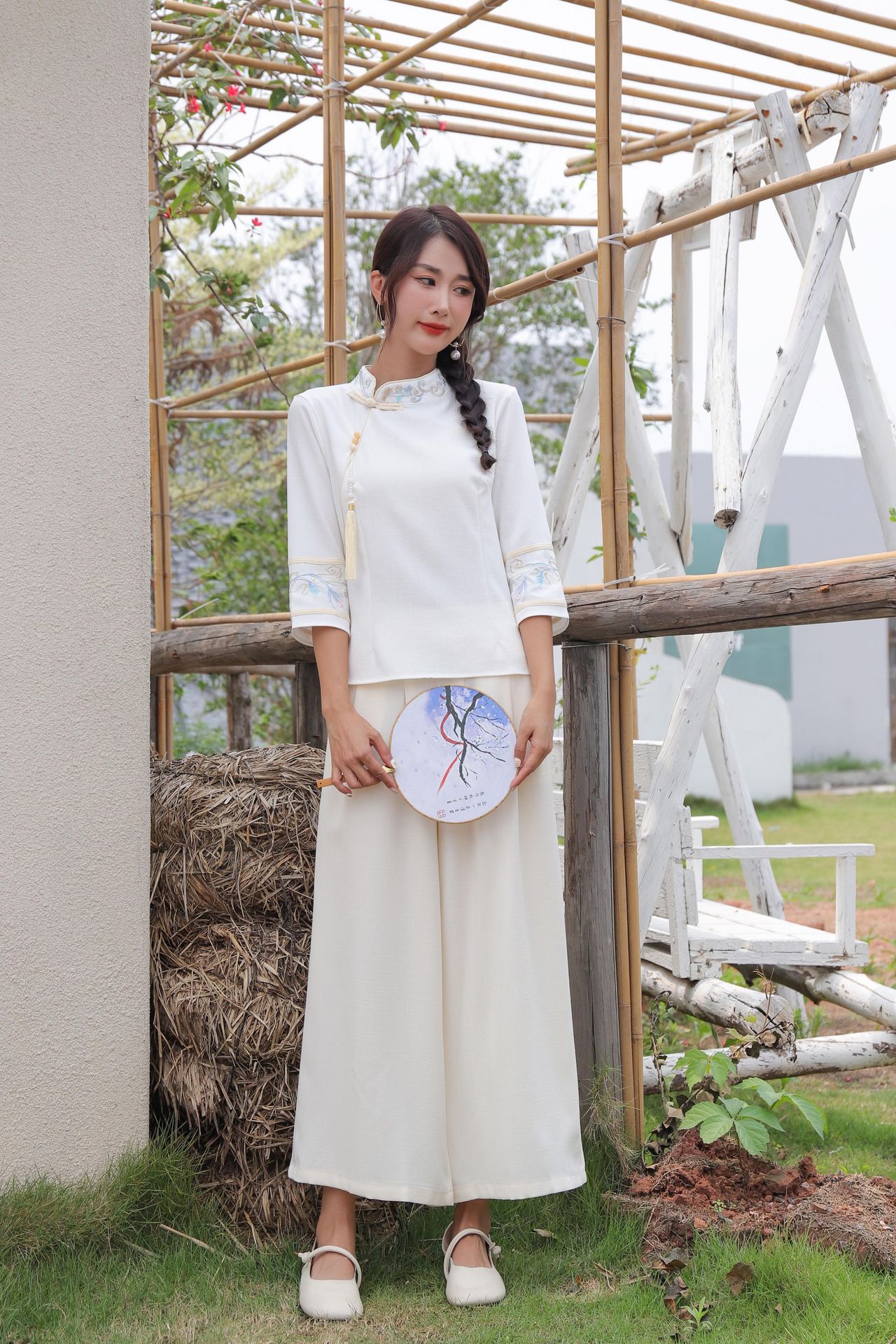 Ретро-песня улучшенный диагональный воротник, пряжка, темперамент, семиочный рукав, маленький топ ретро, китайский стиль, китайский стиль, костюм, чай и cheongsam