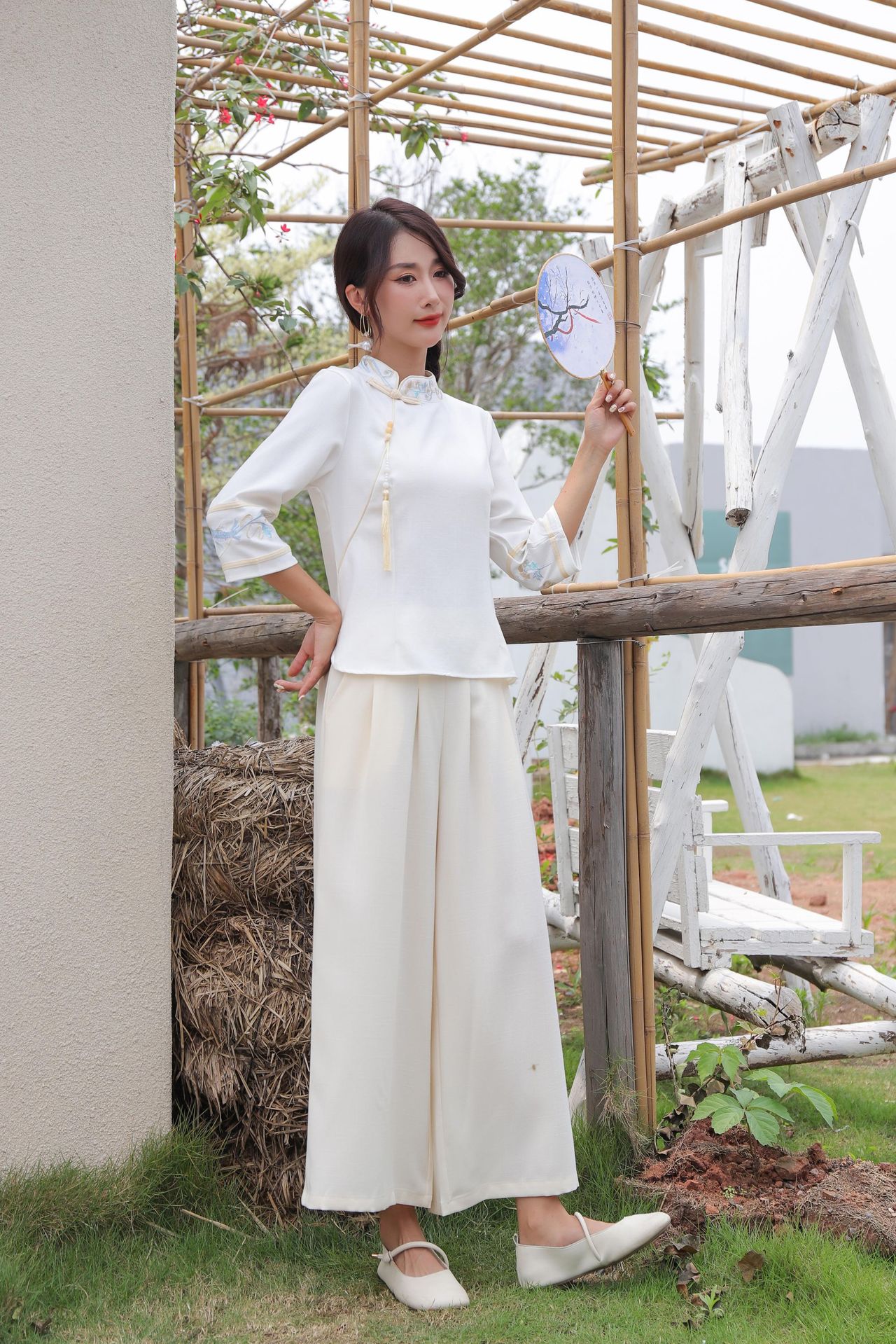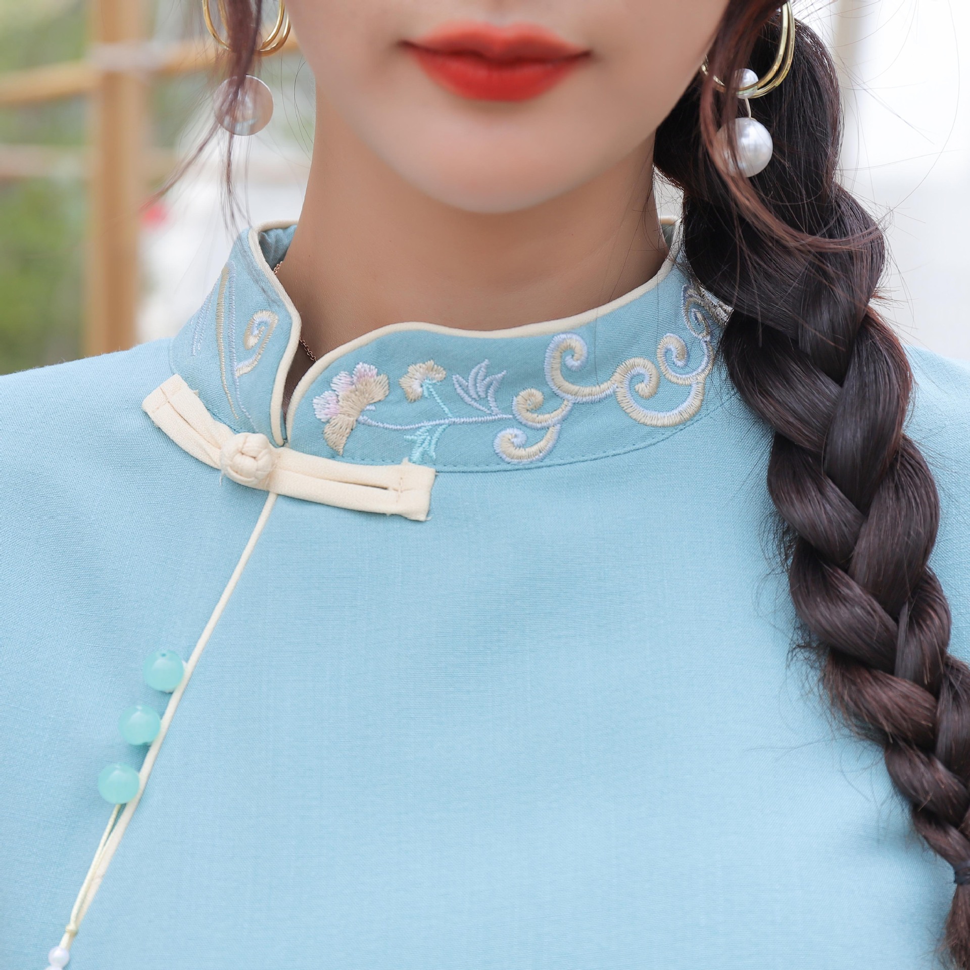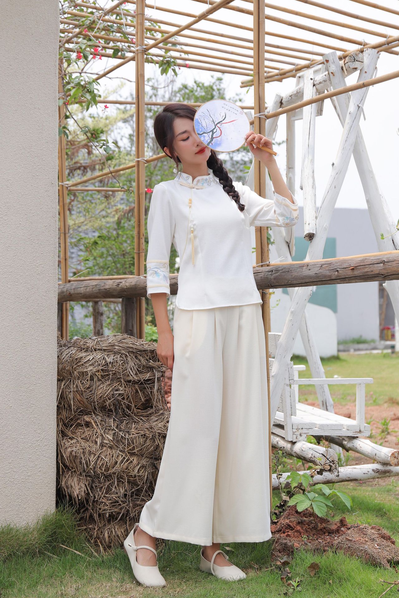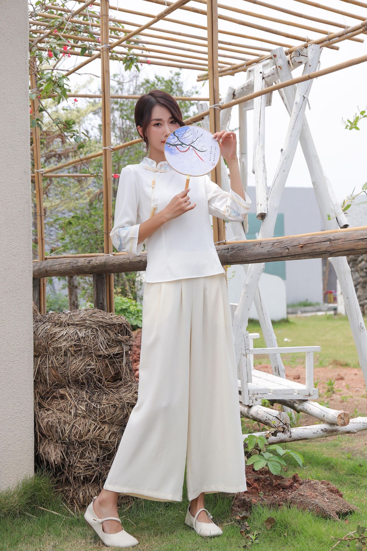 Ретро-песня улучшенный диагональный воротник, пряжка, темперамент, семиочный рукав, маленький топ ретро, китайский стиль, китайский стиль, костюм, чай и cheongsam