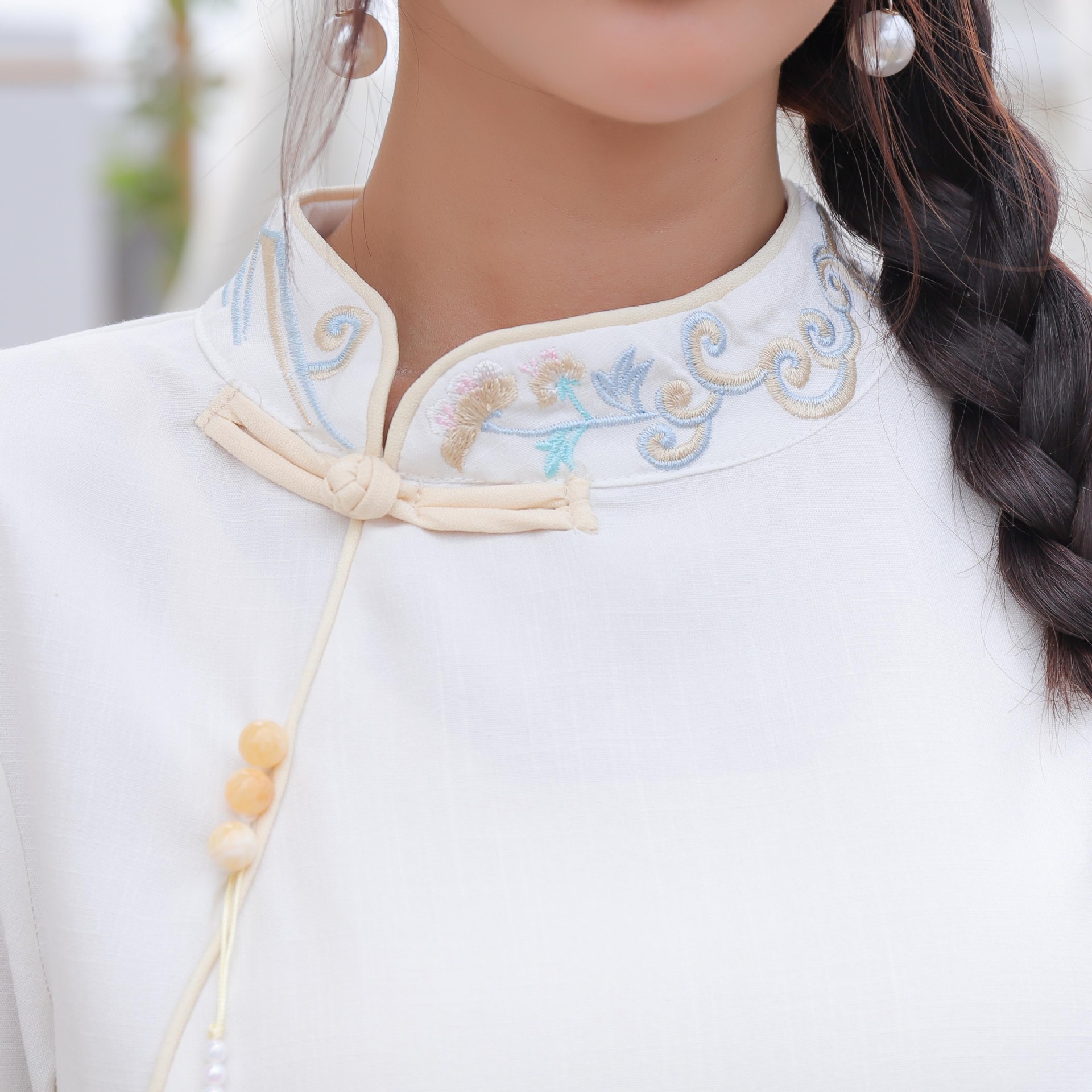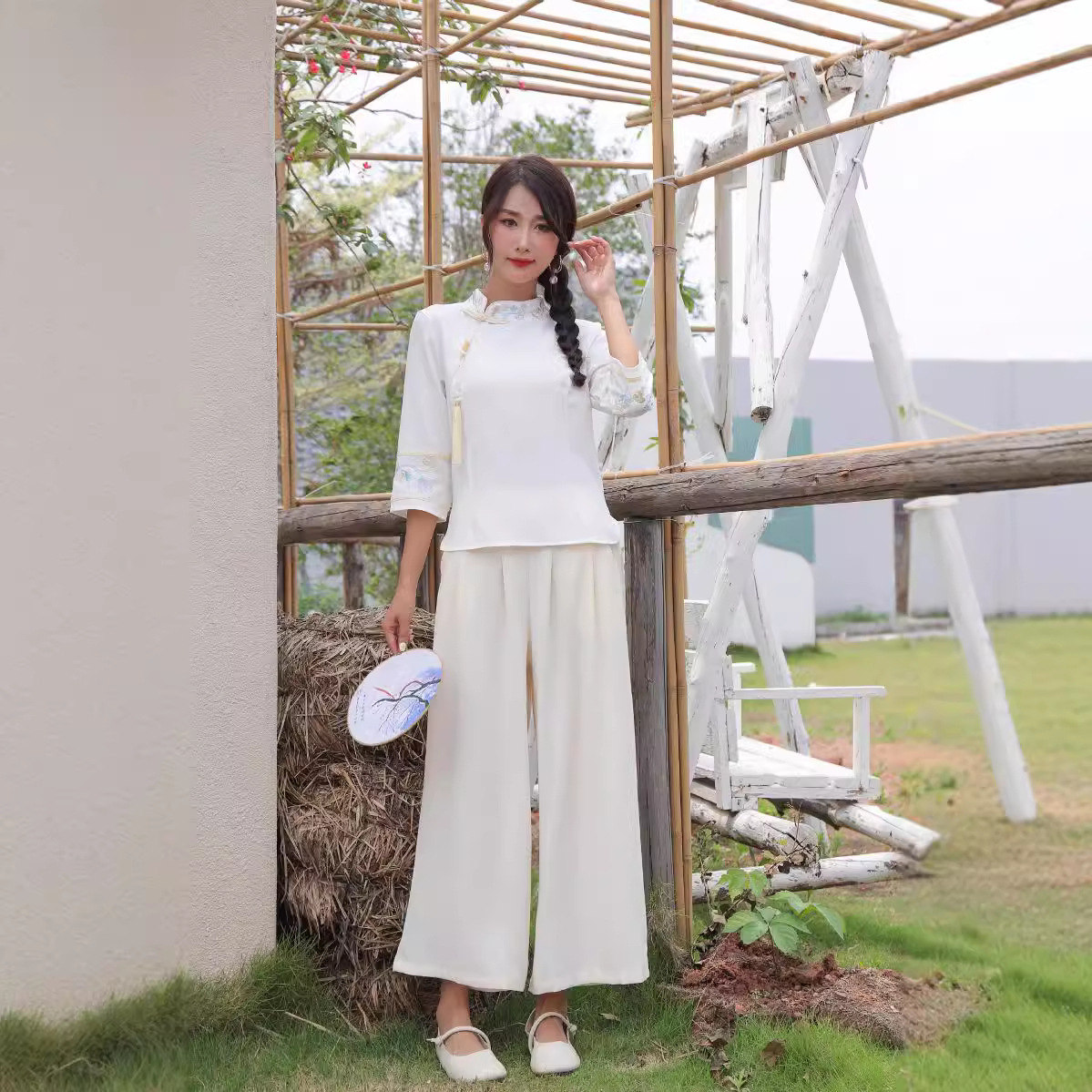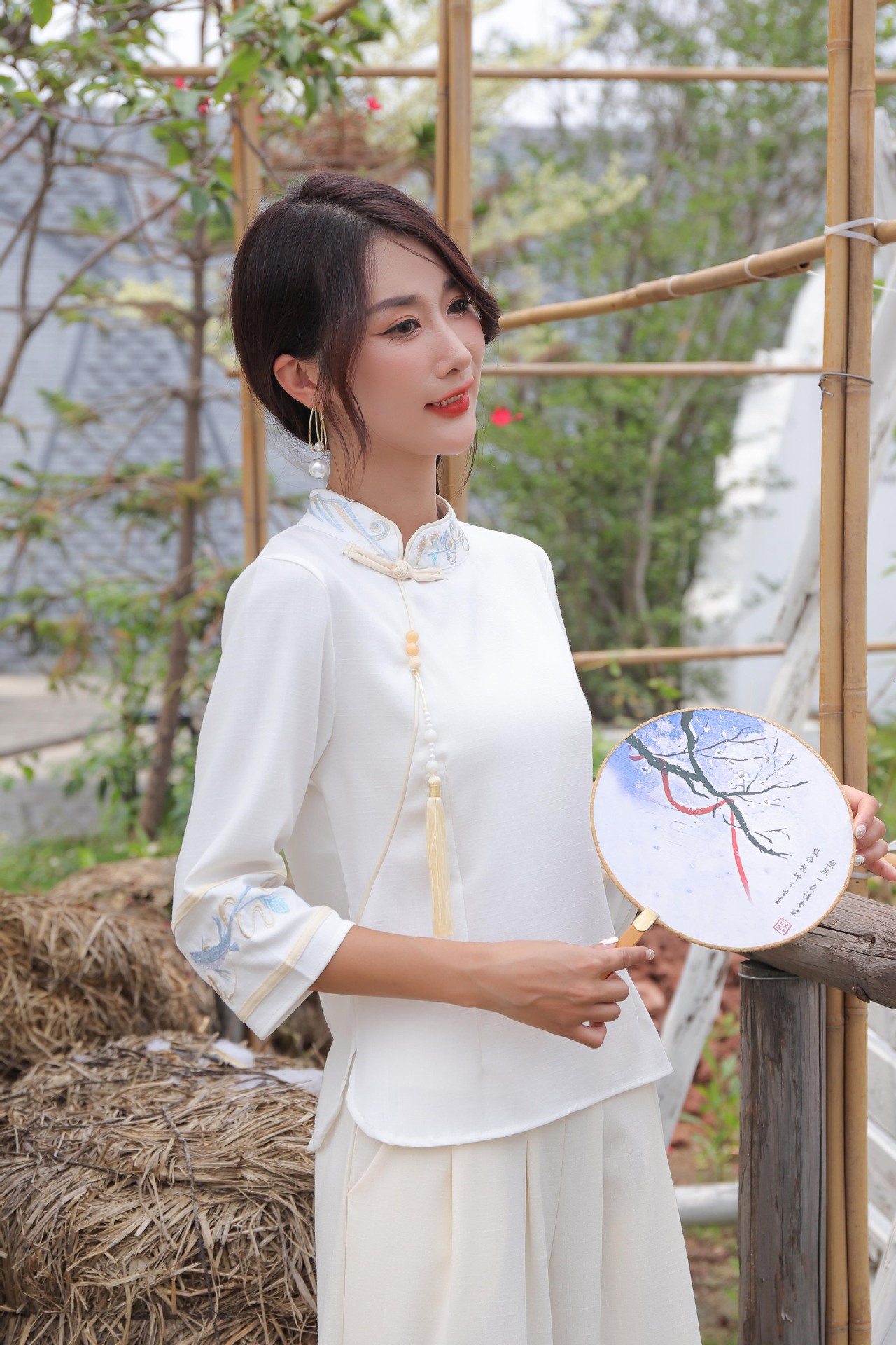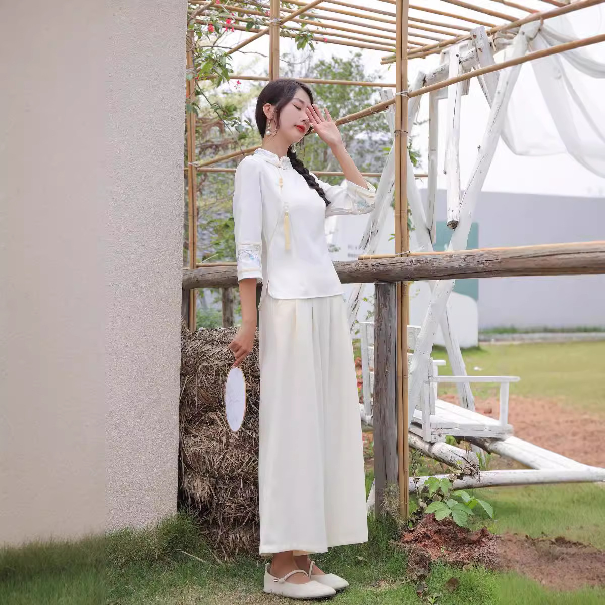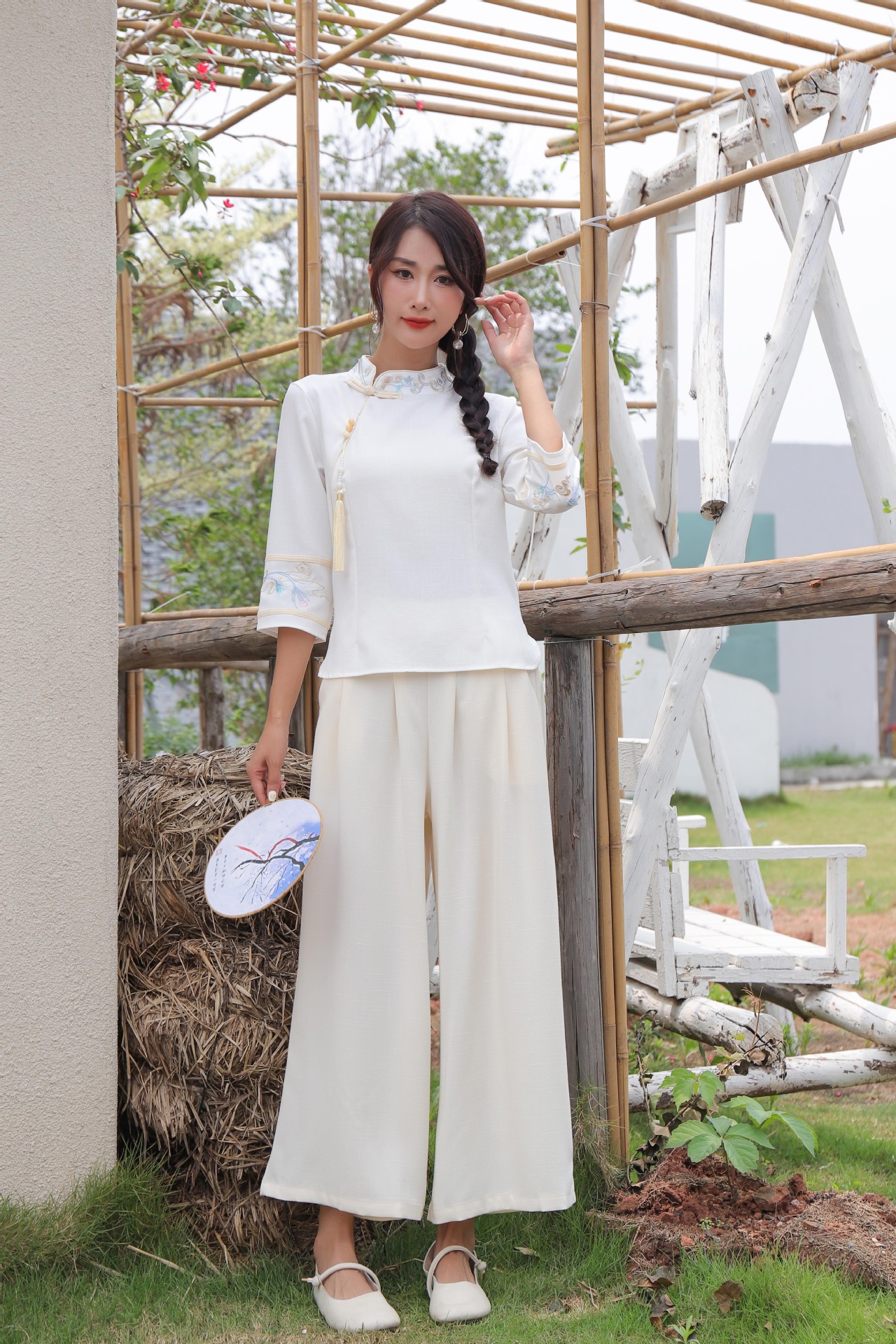 Ретро-песня улучшенный диагональный воротник, пряжка, темперамент, семиочный рукав, маленький топ ретро, китайский стиль, китайский стиль, костюм, чай и cheongsam