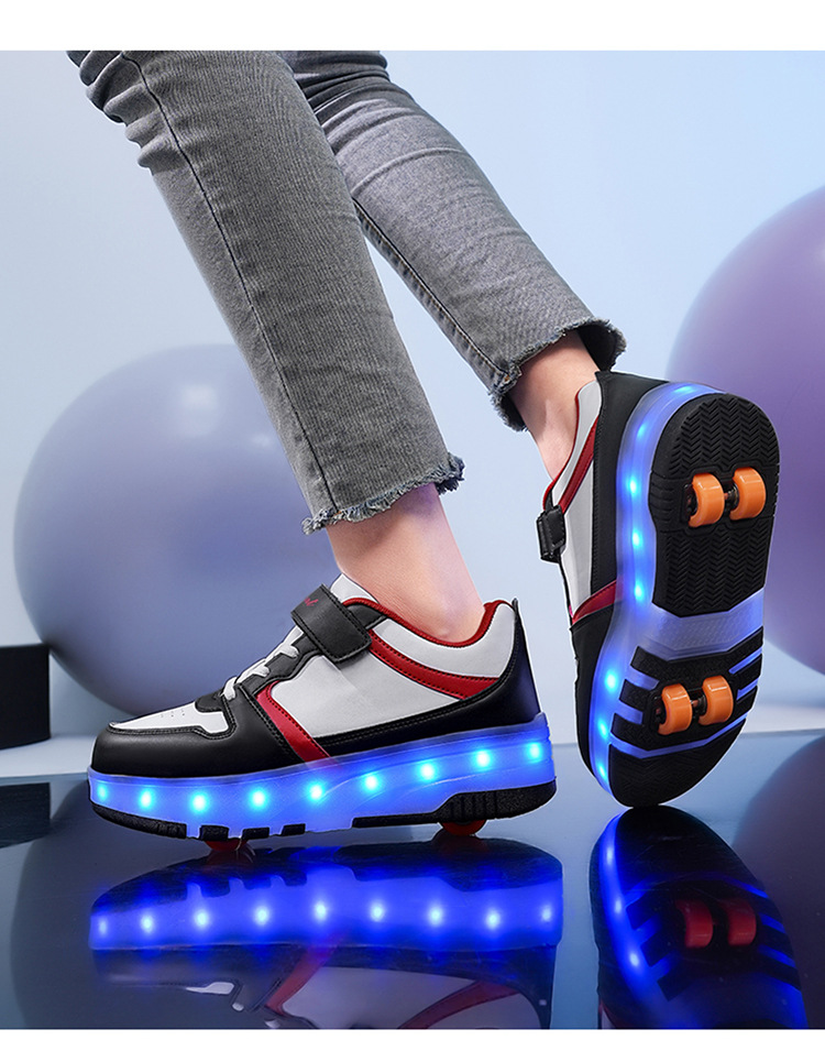 Детская кроссовка четыре колеса деформации Студенческая роликовые коньки Мальчик ролики обувь для девочек восемь раундов невидимых коньков оптом