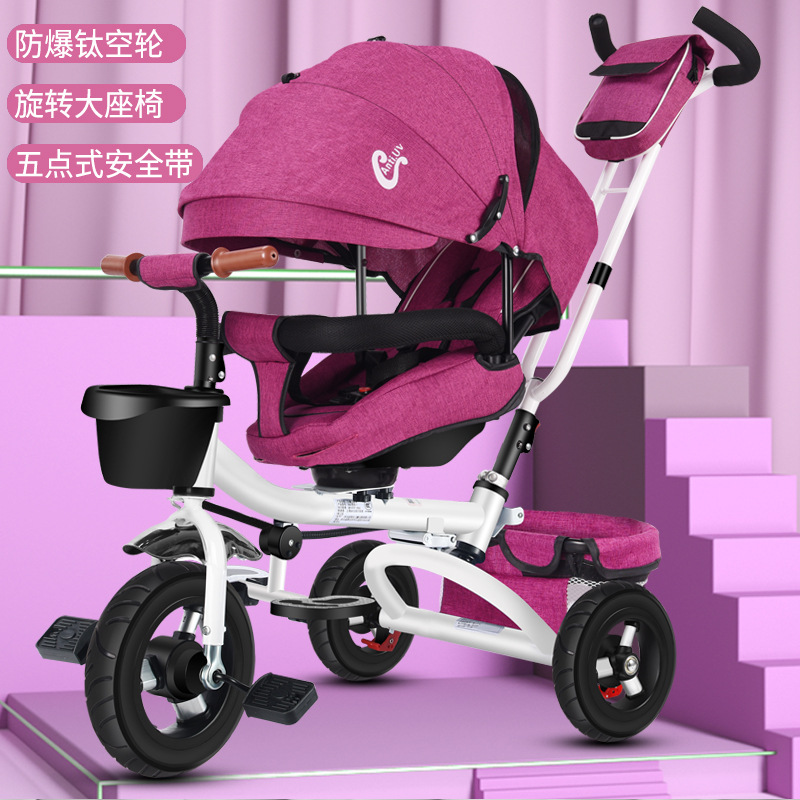 2.旋转可躺座椅、车身可折叠、五点式安全带 加大遮阳蓬、3种脚踏结合适用于不同阶段宝宝