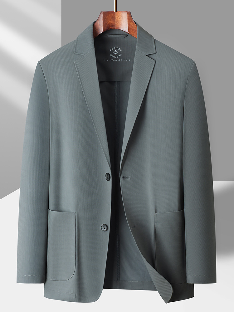 Мужской повседневный и деловой костюм-пиджак из ледяного шелка с вафельным узором, солнцезащитный, не требующий глажки, высокоэластичный, приталенный крой.
