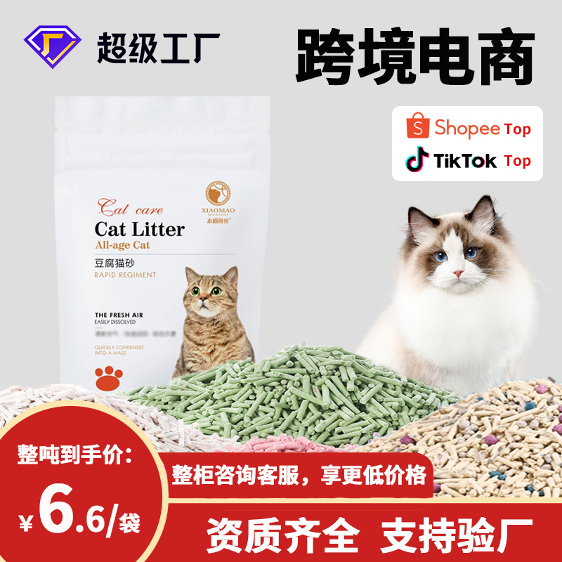 Наполнитель для кошачьего туалета из тофу, 6 л, оптовая продажа для трансграничной электронной торговли, дезодорирующий, с низким содержанием пыли, от производителя, смываемый, экспортный опт