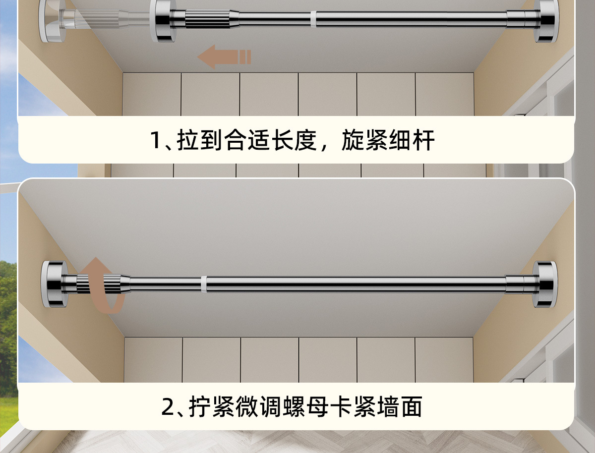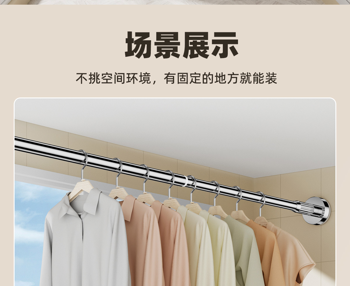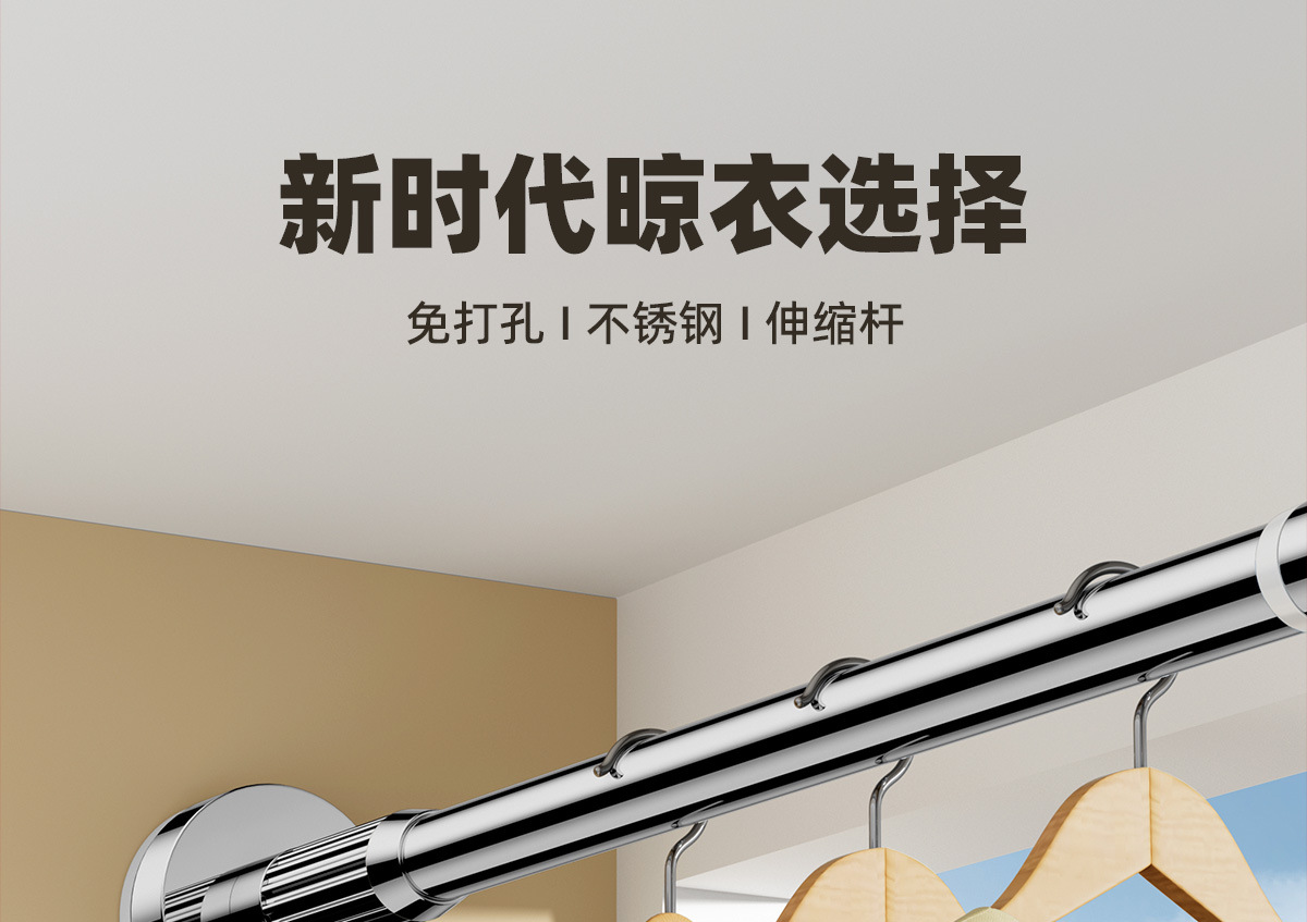 [Бесплатная доставка] Сушилка для одежды из нержавеющей стали, телескопическая карнизная штанга для ванной комнаты, без дырокола, карниз для душа, карниз для спальни