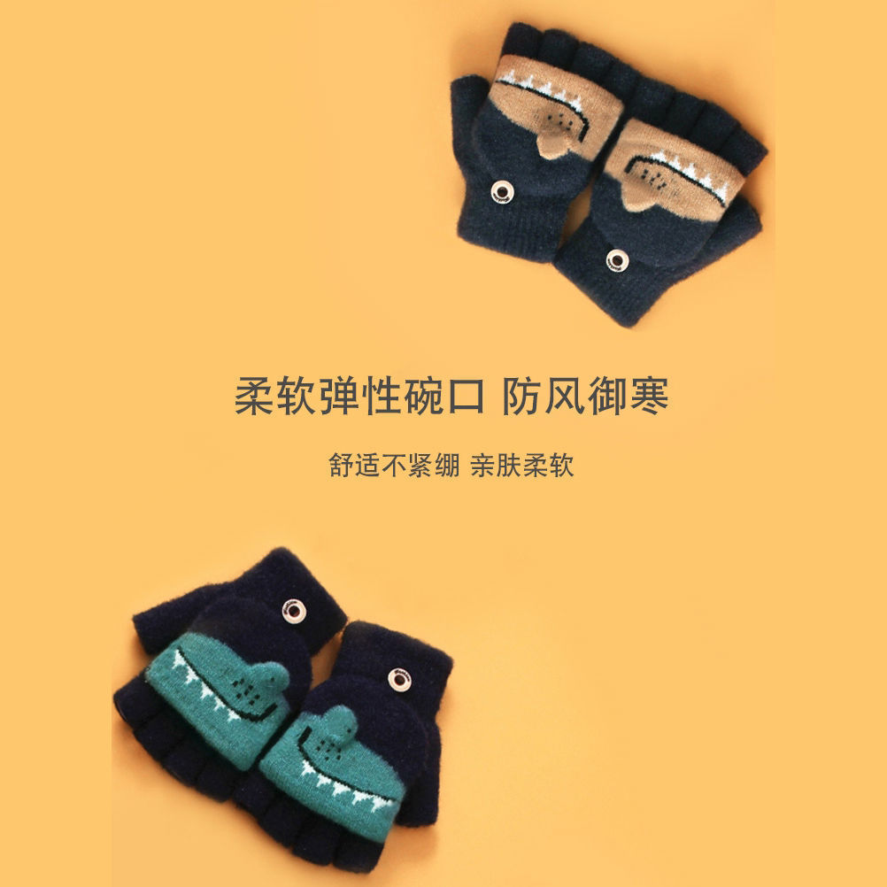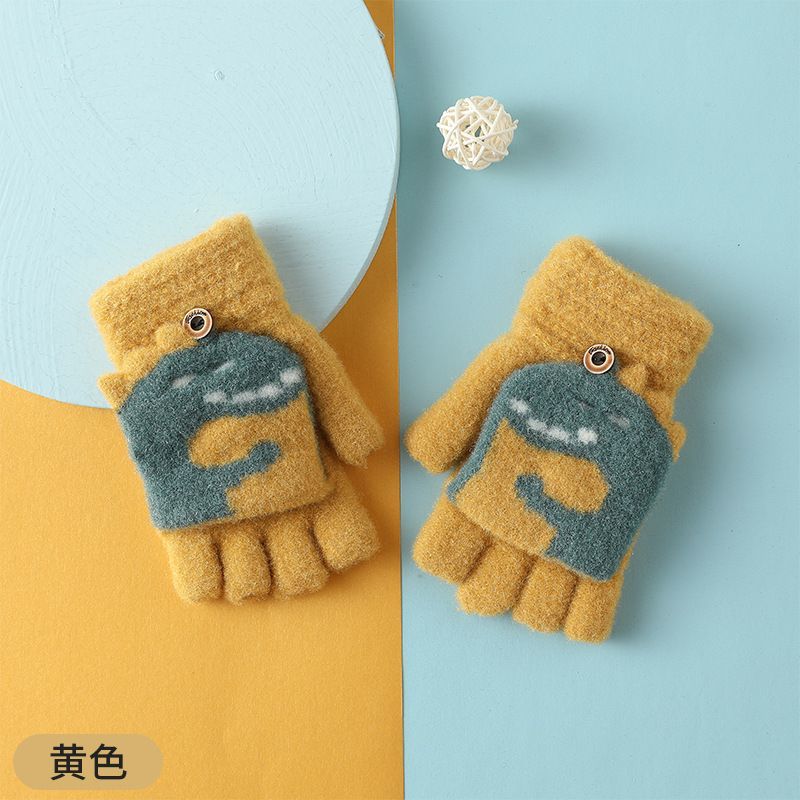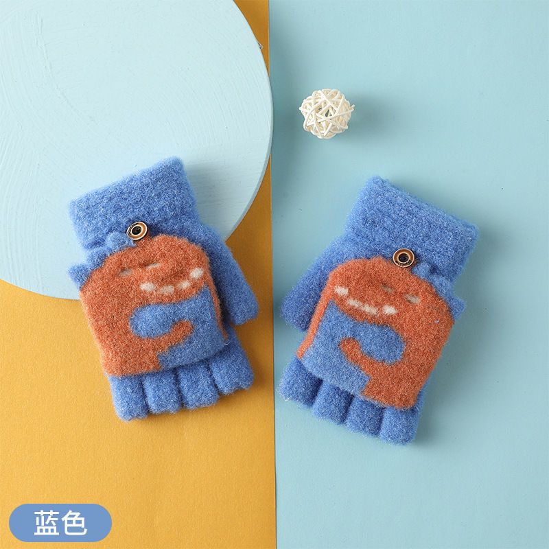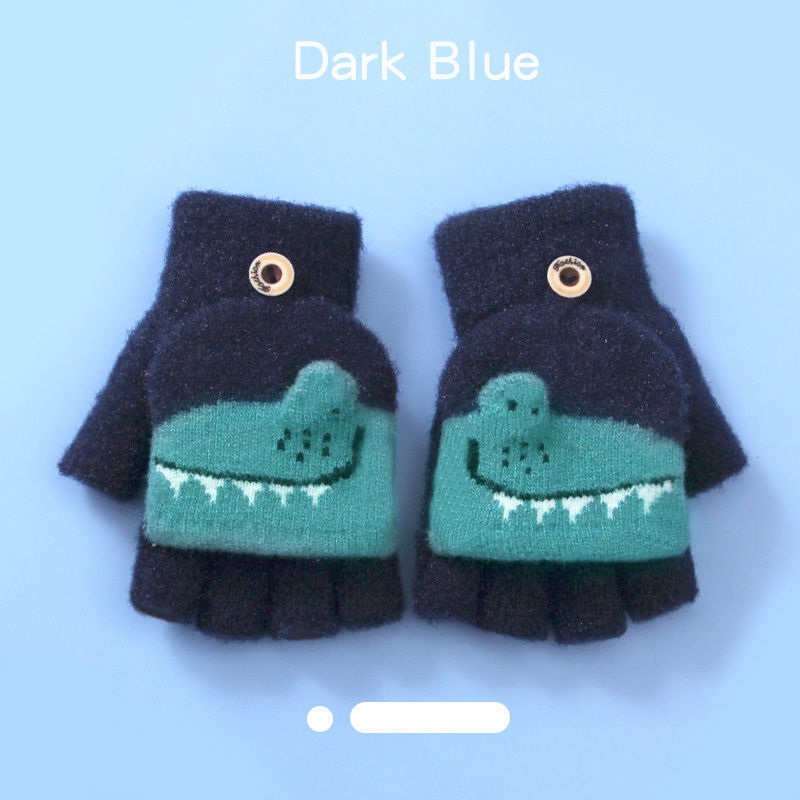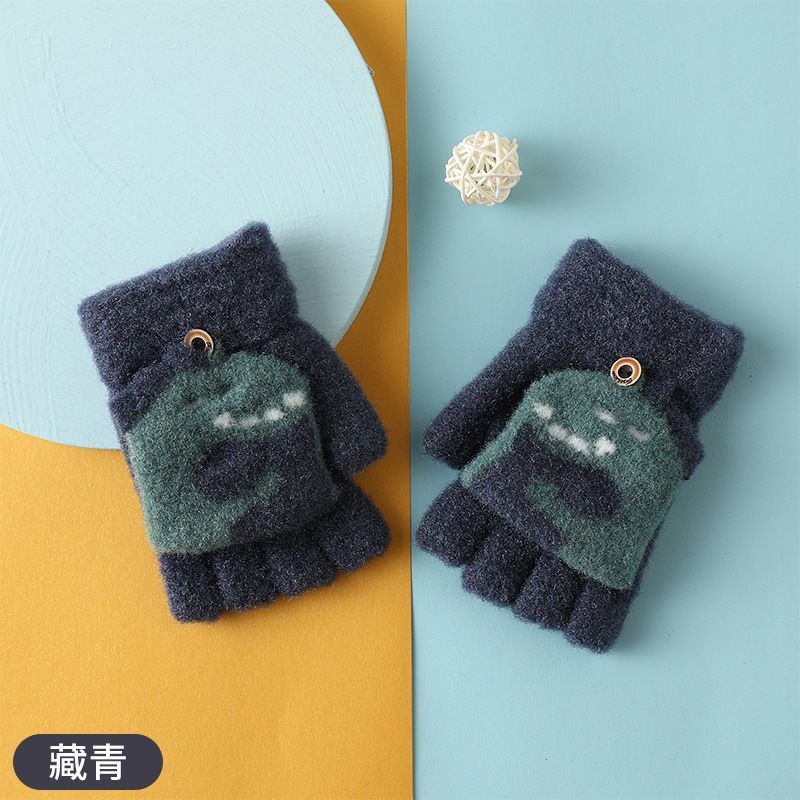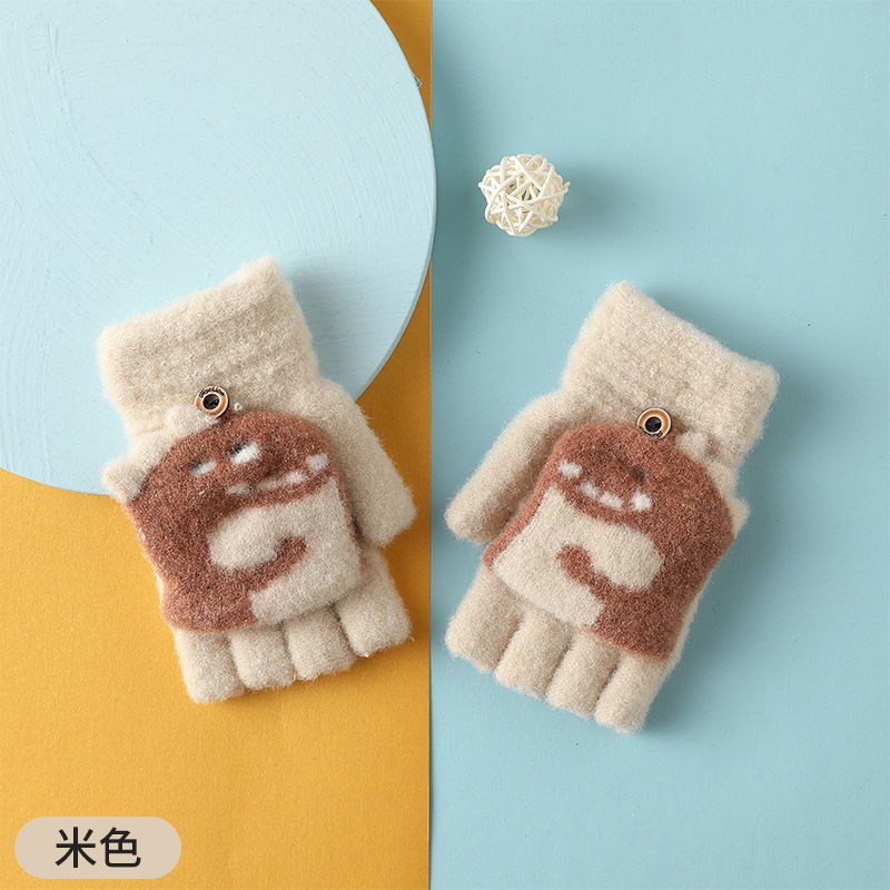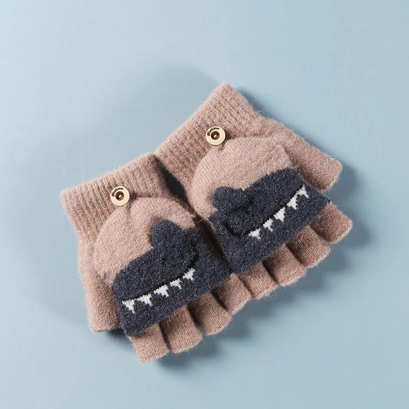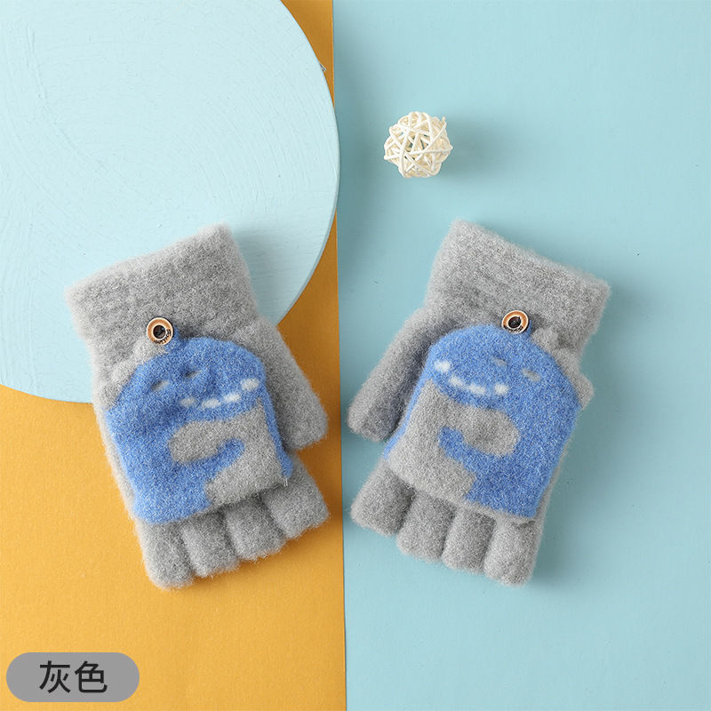Детские флип-перчатки осенне-зимние пять пальцев с открытыми пальцами вязаные Мультяшные мальчики и девочки Детские теплые на флисовой подкладке теплые