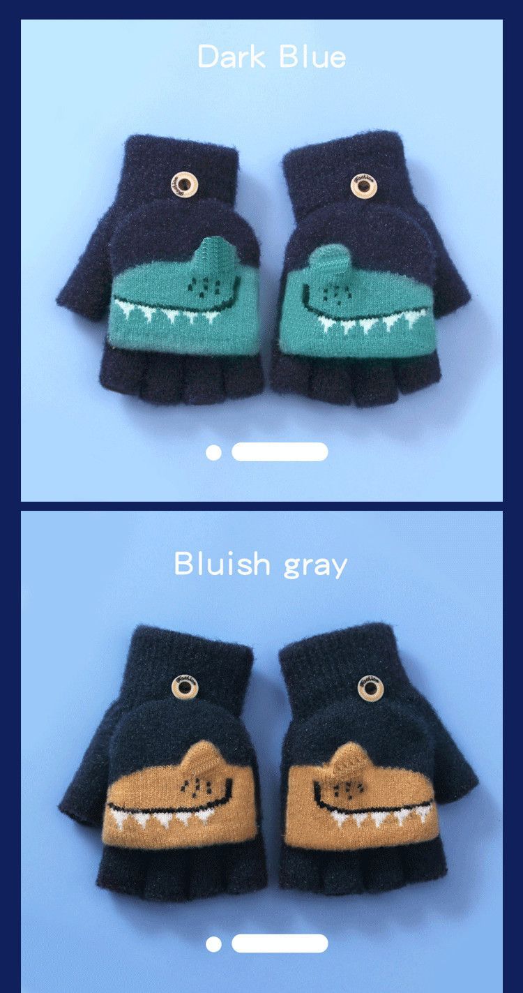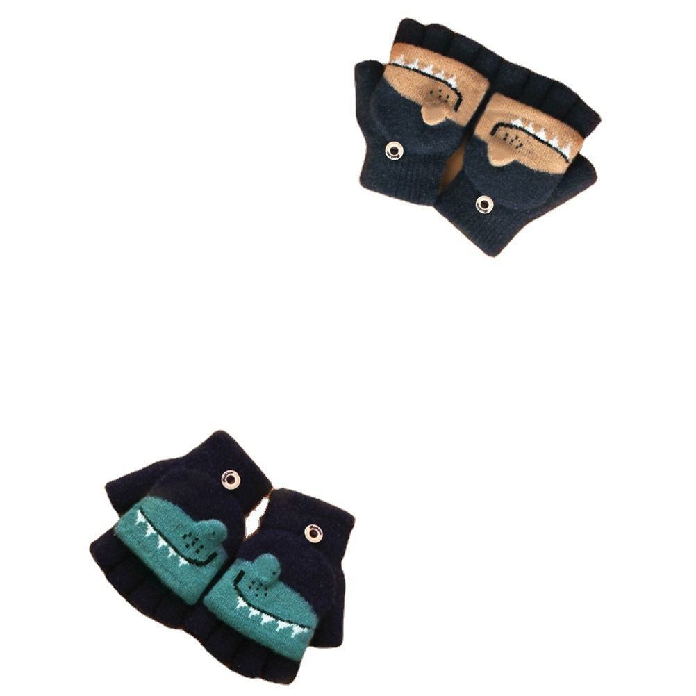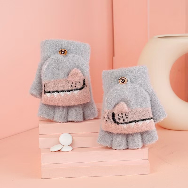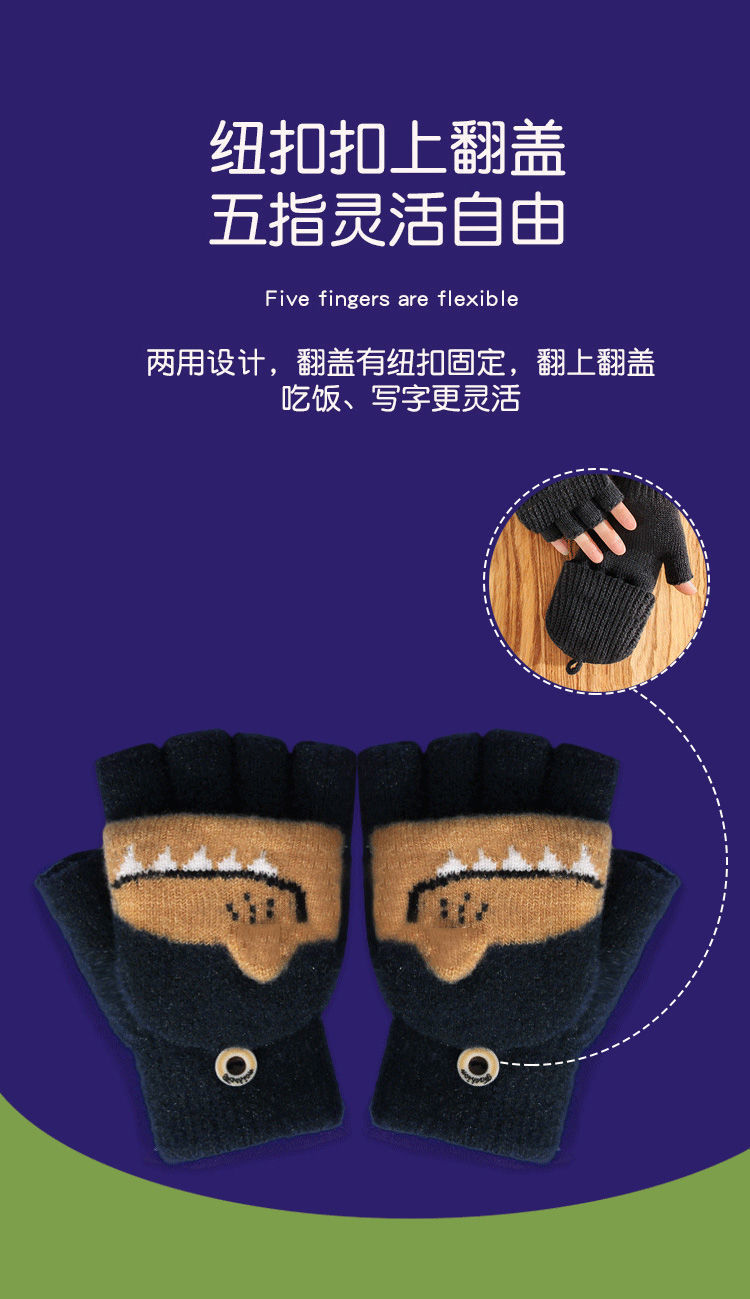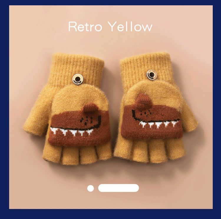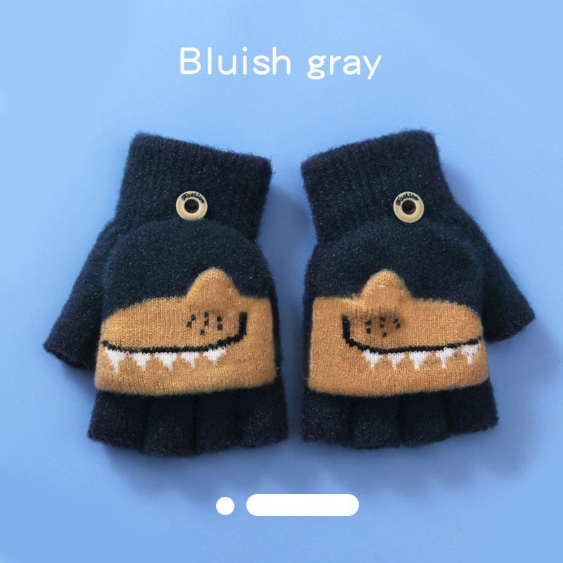Детские флип-перчатки осенне-зимние пять пальцев с открытыми пальцами вязаные Мультяшные мальчики и девочки Детские теплые на флисовой подкладке теплые