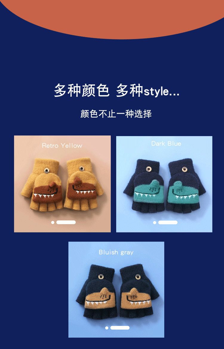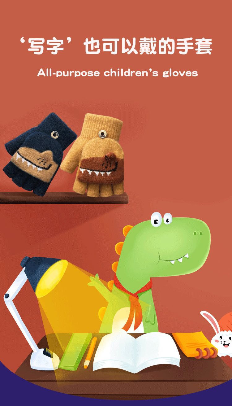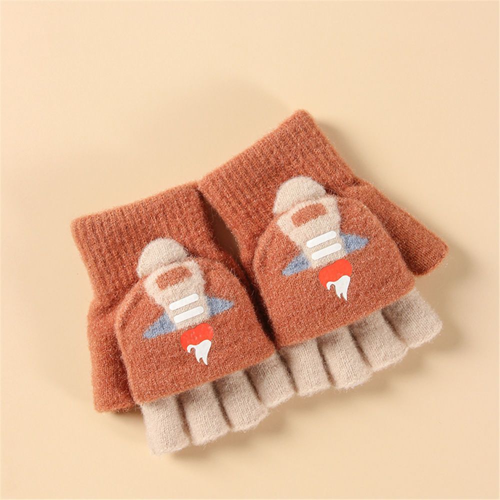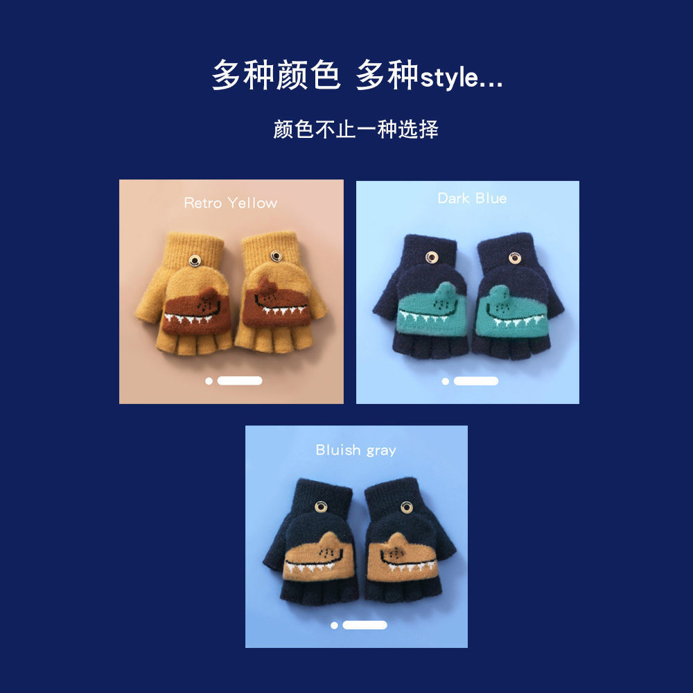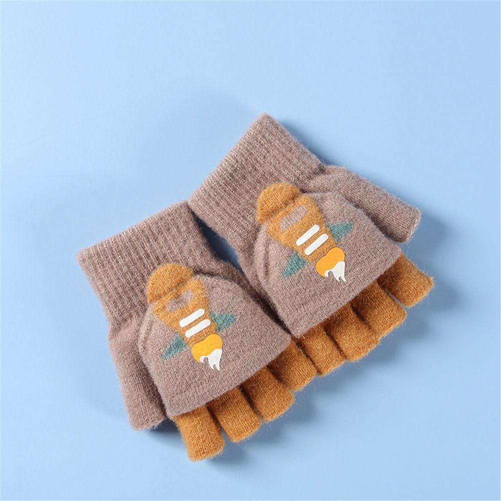 Детские флип-перчатки осенне-зимние пять пальцев с открытыми пальцами вязаные Мультяшные мальчики и девочки Детские теплые на флисовой подкладке теплые