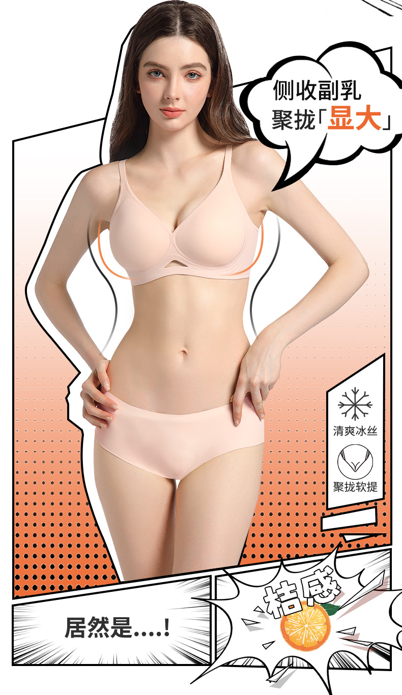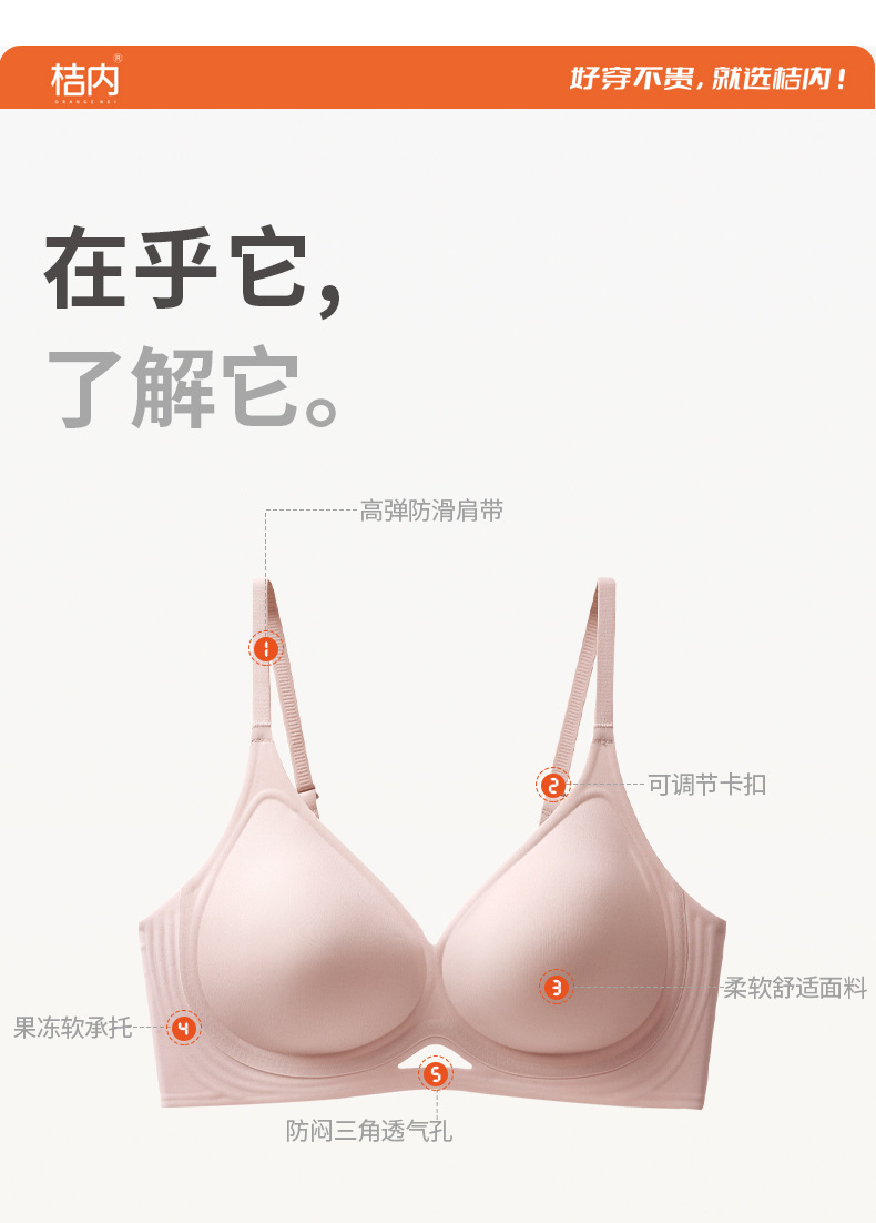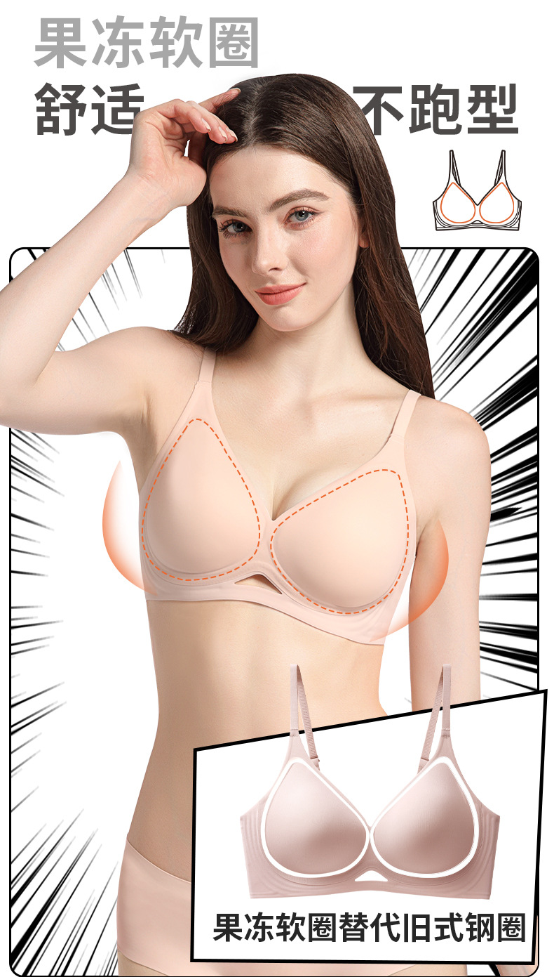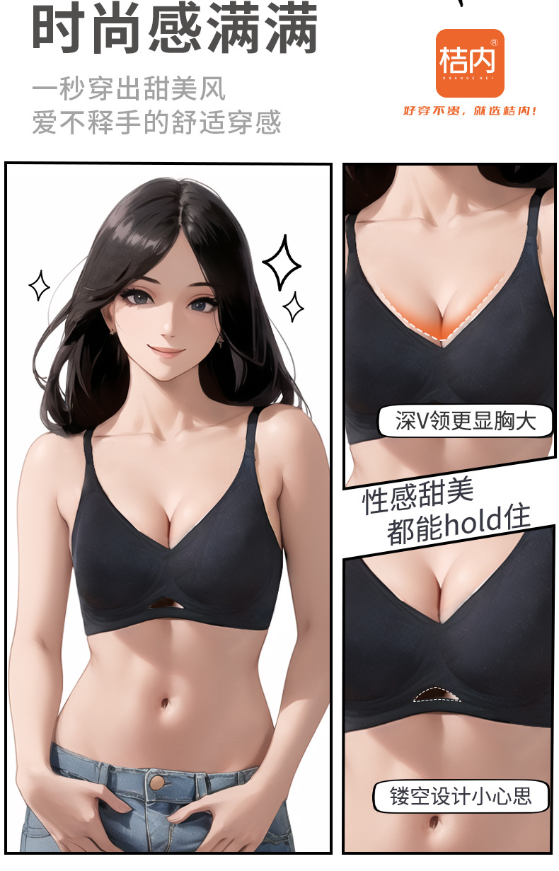 Оранжевый внутренний банановый вогнутое нижнее белье женское весной и летом удобно передний треугольник полый воздухопроницаемый без стального кольца, чтобы собрать тонкую чашку без удержания бюстгальтер