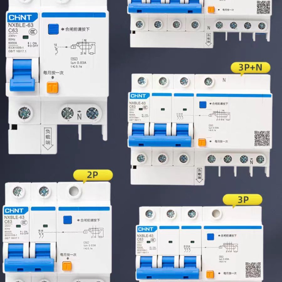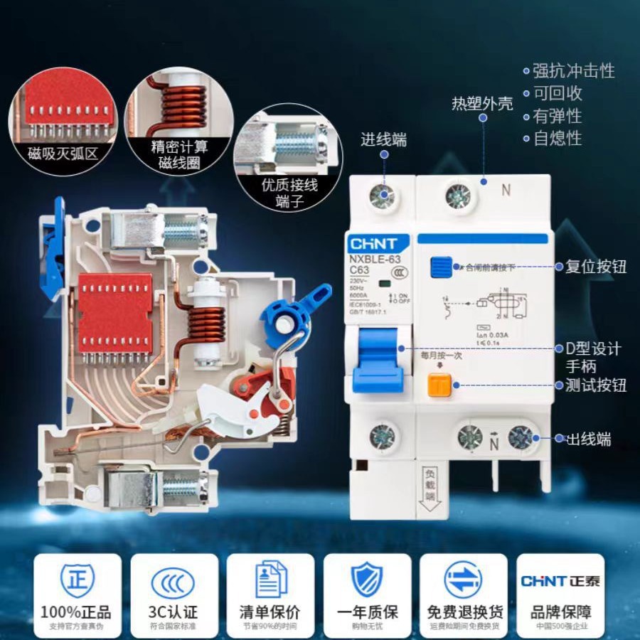 Автоматический выключатель защиты от утечки тока Chint Kunlun NXBLE 63A, главный выключатель DZ47LE