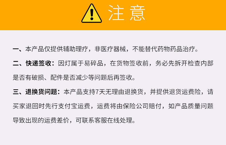 2、配送灯泡不能代替药物、化学治疗等。
