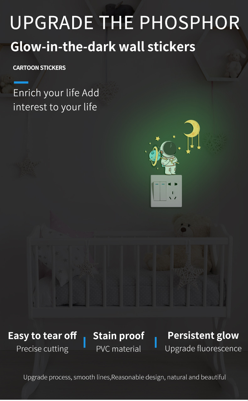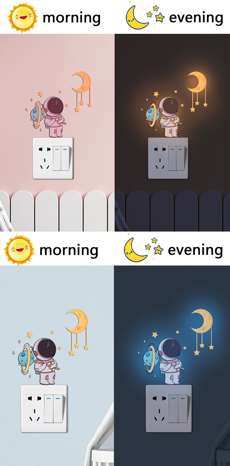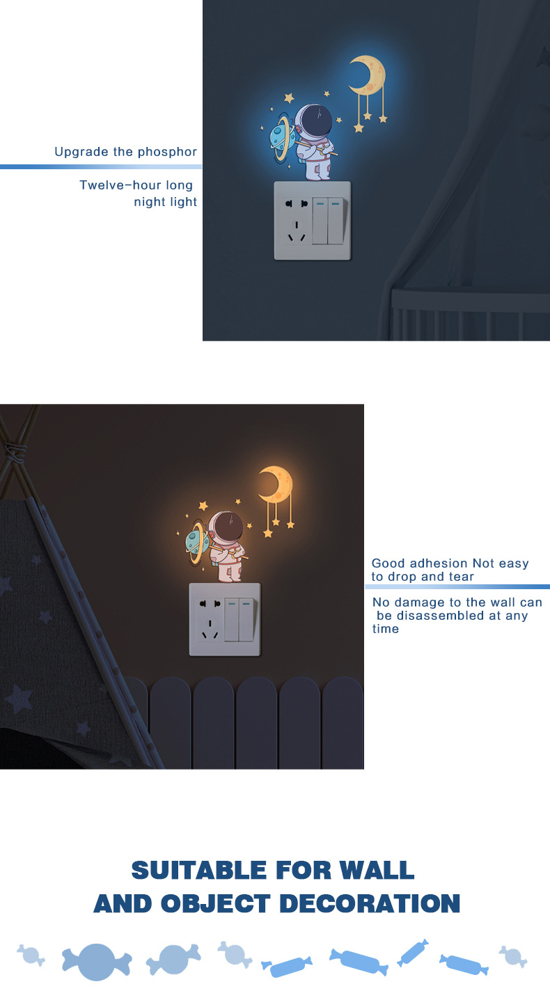 Светящийся астронавт Звезда Луна переключатель наклейка детская комната светящаяся декоративная настенная наклейка гостиная спальня самоклеящаяся наклейка