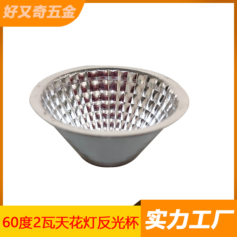 此产品为1090铝材做的反光杯,采用抛光氧化处理,若产品用1060铝质真空镀处理,单价会适当优惠些,反光效果好。材质需要和表面处理都可以根据需要订做。尺寸大小发光角度 可以提供图纸或样品开模具定制。本工厂采用全自动生产加工工艺,价格空间优势大。欢迎来图定制。