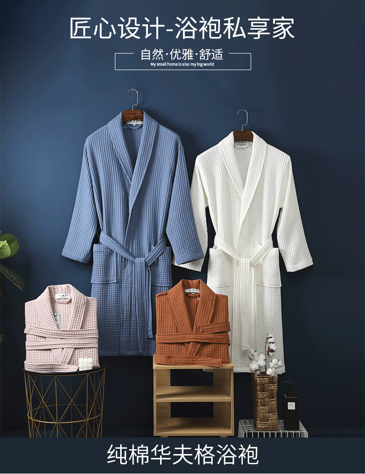 Трансграничные новые хлопчатобумажные халаты весной и осенью вафли длинные халаты в семье