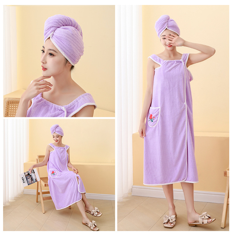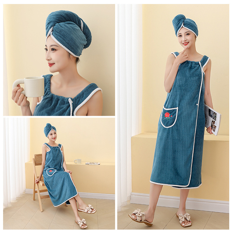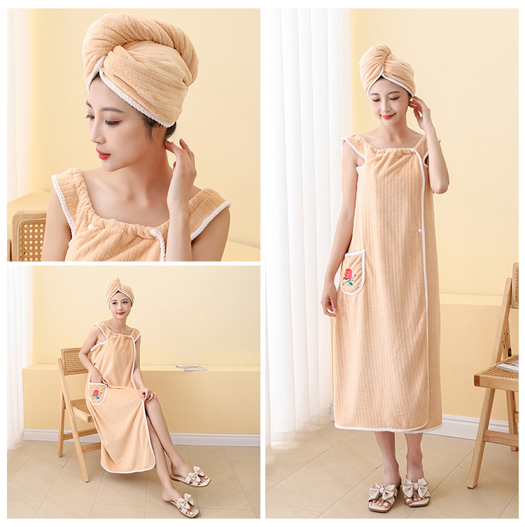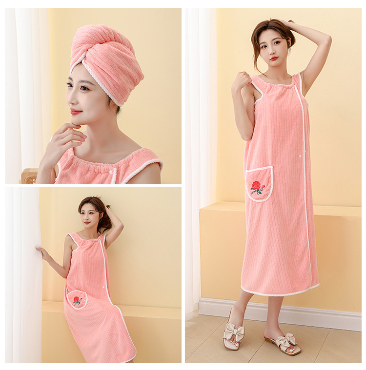 Новое банное полотенце-юбка из кораллового флиса, мягкое и впитывающее для лета, с вышитым карманом, носимое банное полотенце с лямками, банное полотенце-юбка.