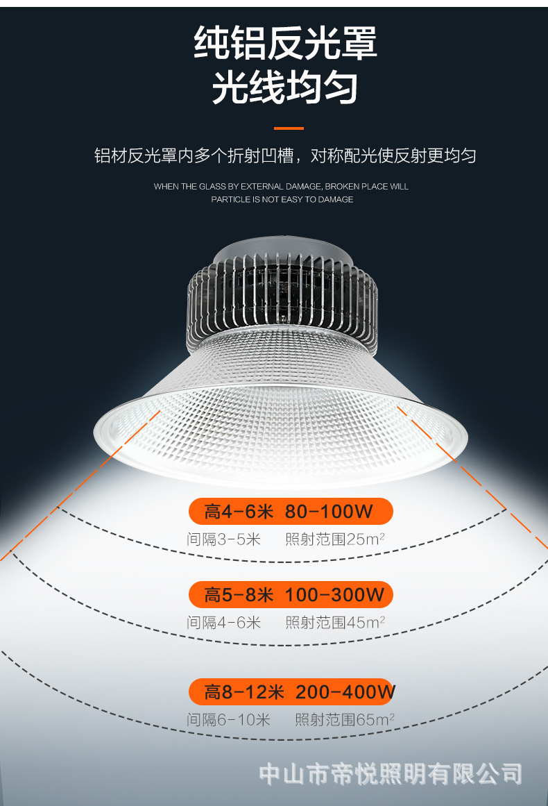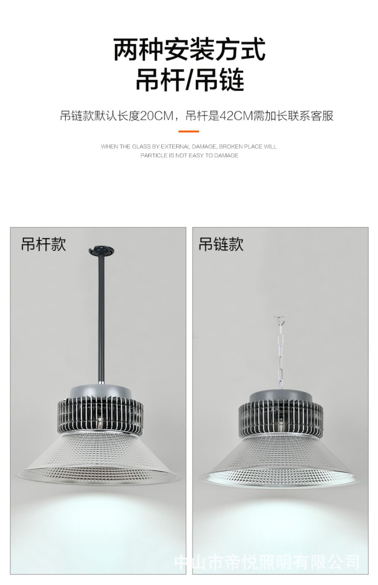 100w; 150w; 200w; 300w; 400w; Можно добавить антибликовое покрытие.; Может быть настроен в соответствии с требованиями заказчика; Стандартная подвесная цепная стрела имеет длину 50cm мм.