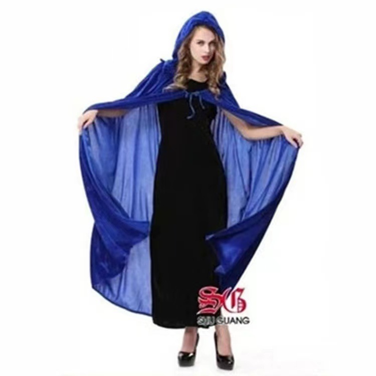 Плащ на Хэллоуин, черный плащ для взрослых, костюм вампира, волшебник, дьявол, смерть, с капюшоном, золотой бархатный плащ, красный