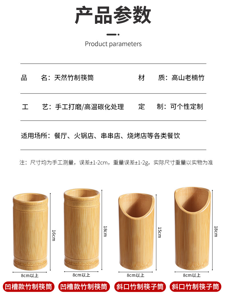 Бамбуковая тюбик для палочек, маленький размер 12*8 см.; Бамбуковая тюбик для палочек среднего размера 15*8,5 см.; Бамбуковая тюбик для палочек большого размера 18*8,5 см.; Наклонная бамбуковая тюбик для палочек 15*8см.; Наклонная бамбуковая тюбик для палочек 18*8см.; Бамбуковая бочка для палочек со скошенным горлышком 9*18см.; Рифленая бамбуковая палочка для палочек 16*8см.; Рифленый бамбуковый держатель для палочек 18*8см.; Деревянный тюбик для палочек 13см*8,9см; Деревянный тюбик для палочек 15см*9см; Бамбуковая ложка и палочки для еды двойной ствол 16,5*15*9 см.; Бамбуковая коробка для еды 27,5*12*7,3 см; Бамбуковая коробка для салфеток 14*14*7см.; Бамбуковая трехмерная коробка для салфеток 15*13*5см; Бамбуковая коробка для зубочисток 5*7см.; Дубовая коробка для зубочисток 4,3*4,3*8,6 см; Бамбуковая коробка для зубочисток круглая А 9*5,8см; Бамбуковая коробка для зубочисток круглая типа B 10*6см; Бамбуковая коробка для зубочисток в бамбуковом стиле 9*5,8 см; Бамбуковая коробка для зубочисток с большим животом 8*5,8 см.; Бамбуковая коробка для зубочисток, маленькая талия, 8*5,8 см
