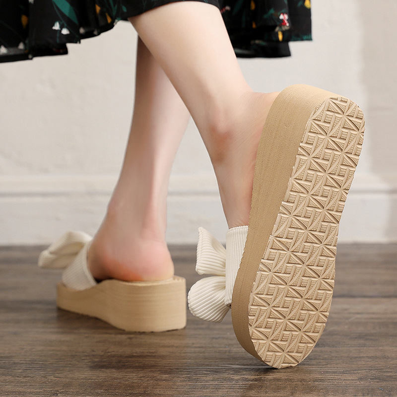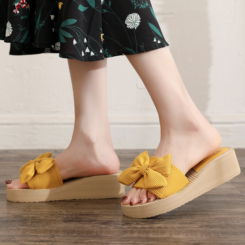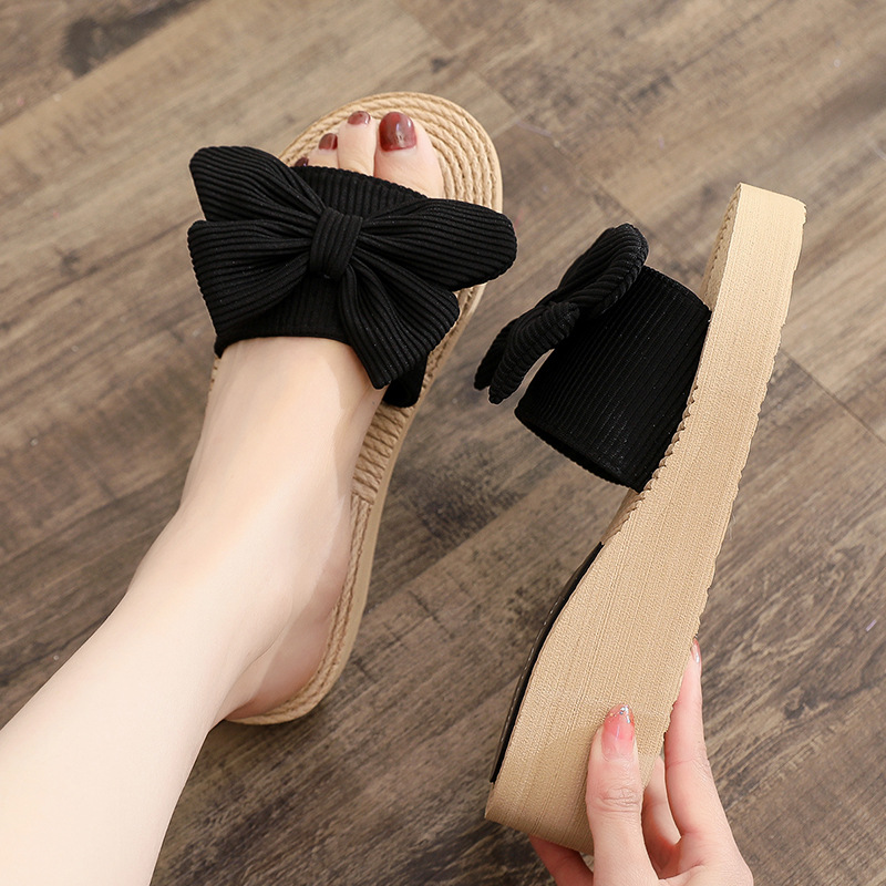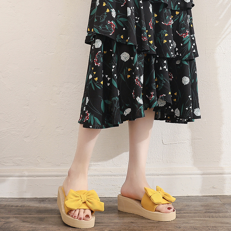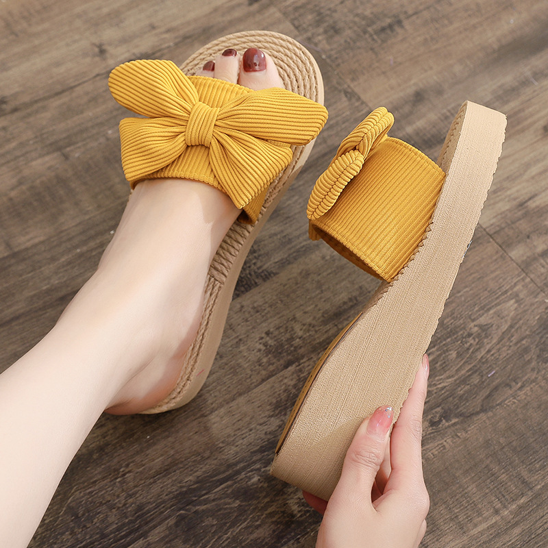 Летние производители прямые плюс размер Сплошной Цвет бант на слово с тапочками женская одежда боковые пляжные Тапочки