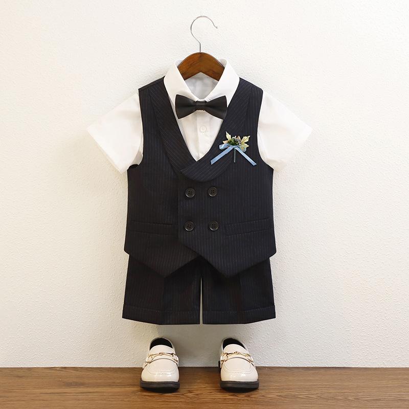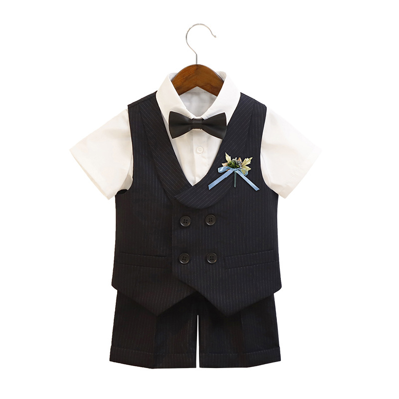 Детские костюмы, весенне-летние модные полосатые жилеты, костюмы с короткими рукавами, одежда для выступлений для мальчиков, детские платья для девочек-цветочниц