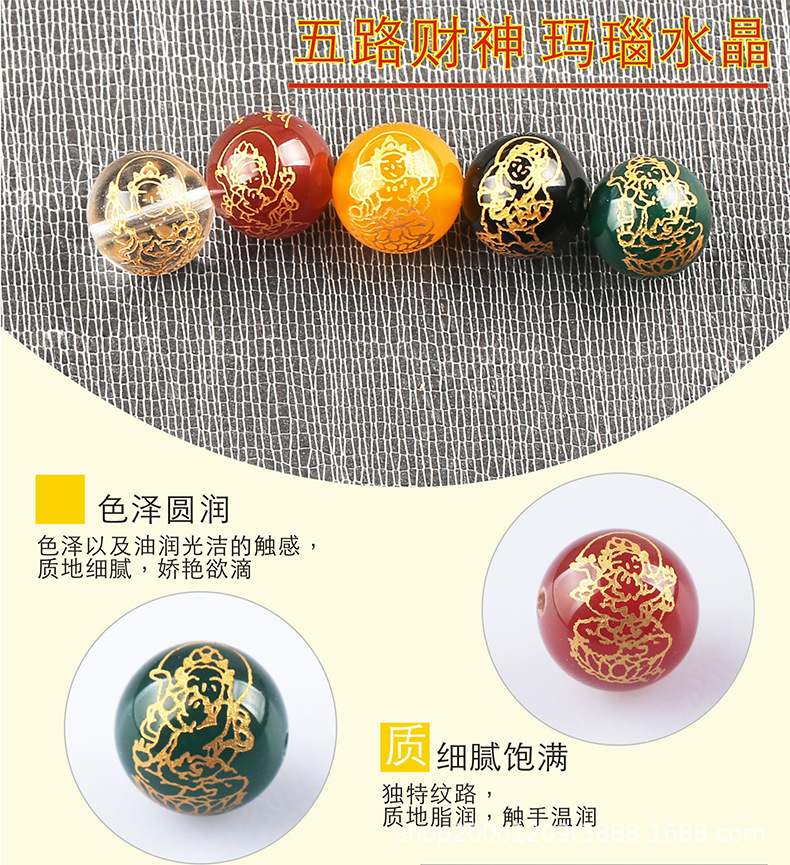 Оптовые бусины из агата «Пятисторонний Бог Богатства», гравированные, с золотым тиснением, для самостоятельного изготовления браслетов и ювелирных изделий, круглые бусины, пять цветов, красный агат