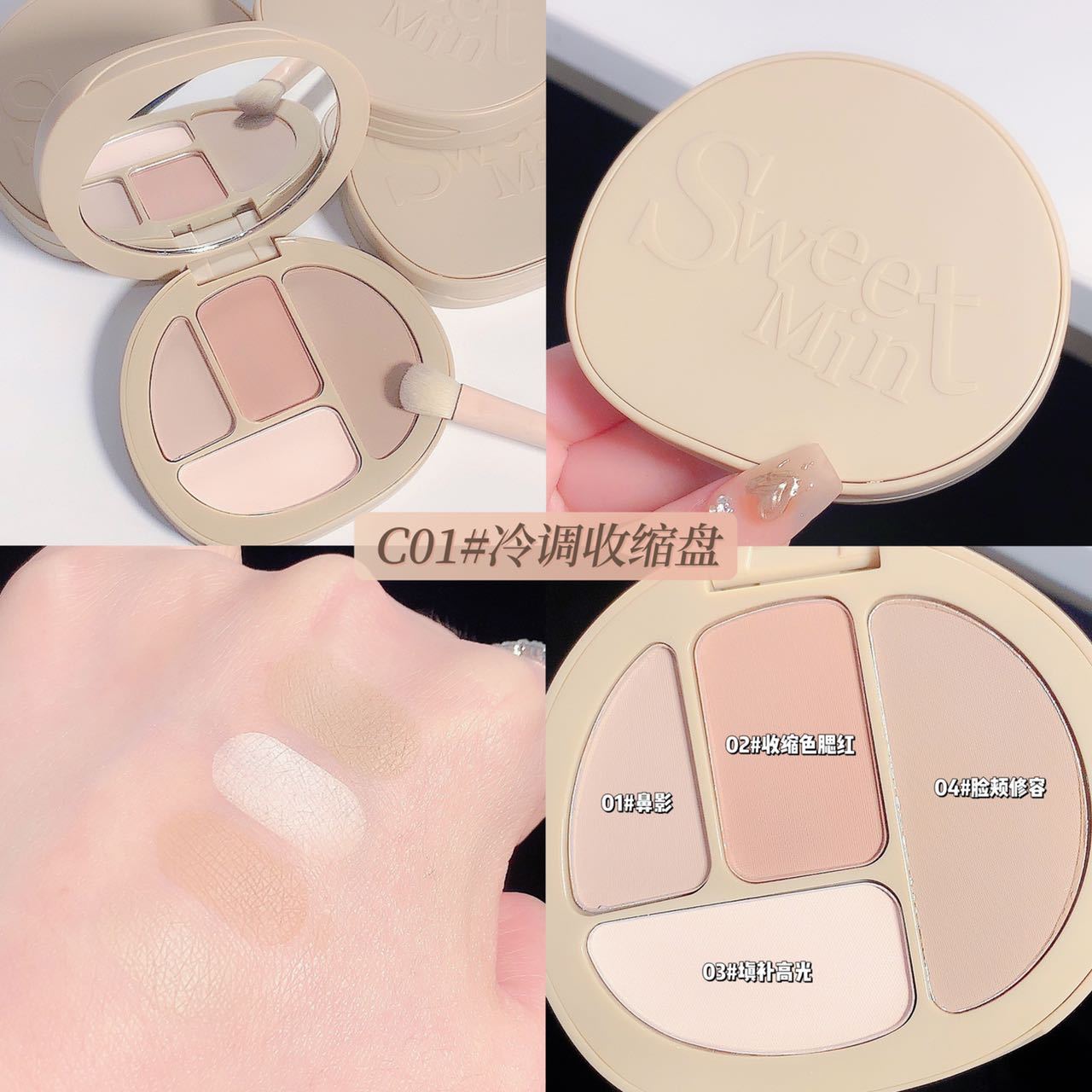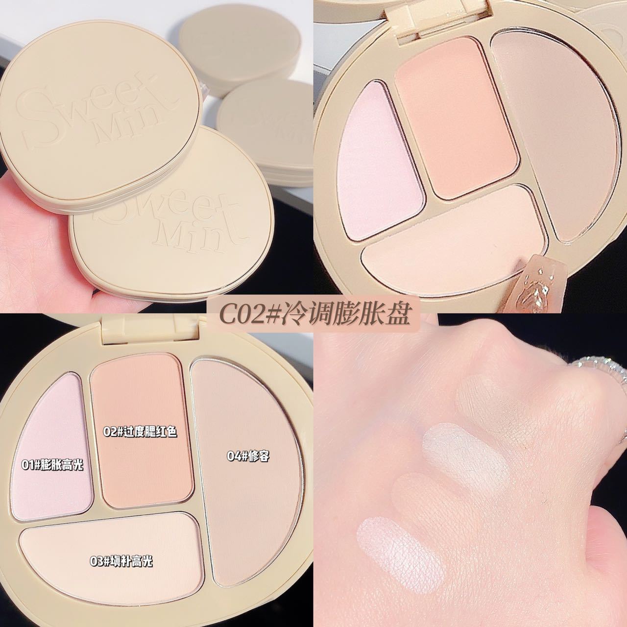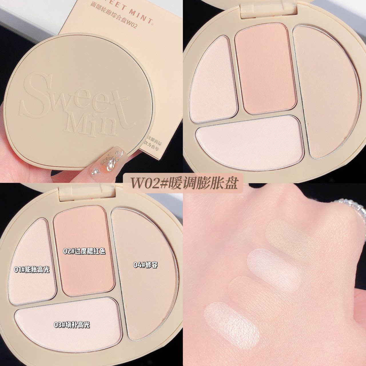 SWEETMINT Комплексная пластина для контура лица Подсветка Румяна Up Три-в-одном пригородная косметичка