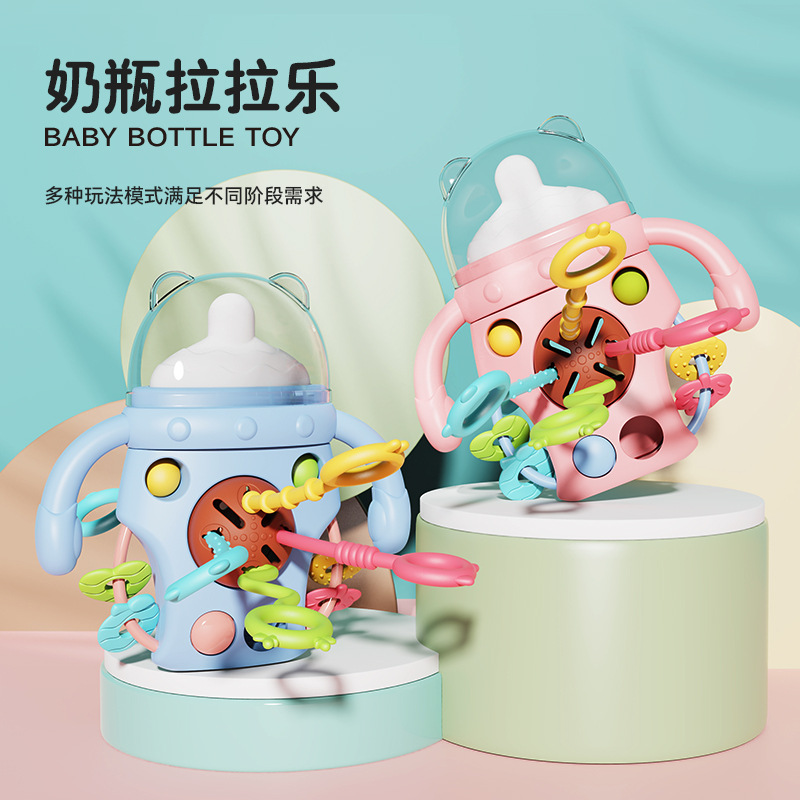 Синяя игрушка-раскладушка для детской бутылочки; Розовая игрушка-раскладушка для детской бутылочки