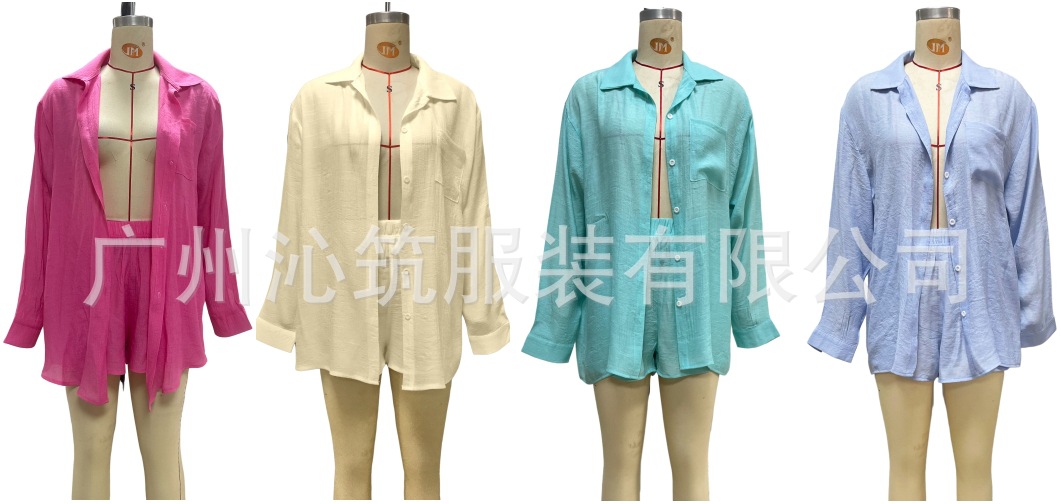 Белый (куртка + шорты); Черный (куртка + шорты); Розово-красный (куртка + шорты); Зеленый (куртка + шорты); Оранжевый (куртка + шорты); Абрикос (куртка + шорты); Голубой (куртка + шорты); Мятно-зеленый (куртка + шорты