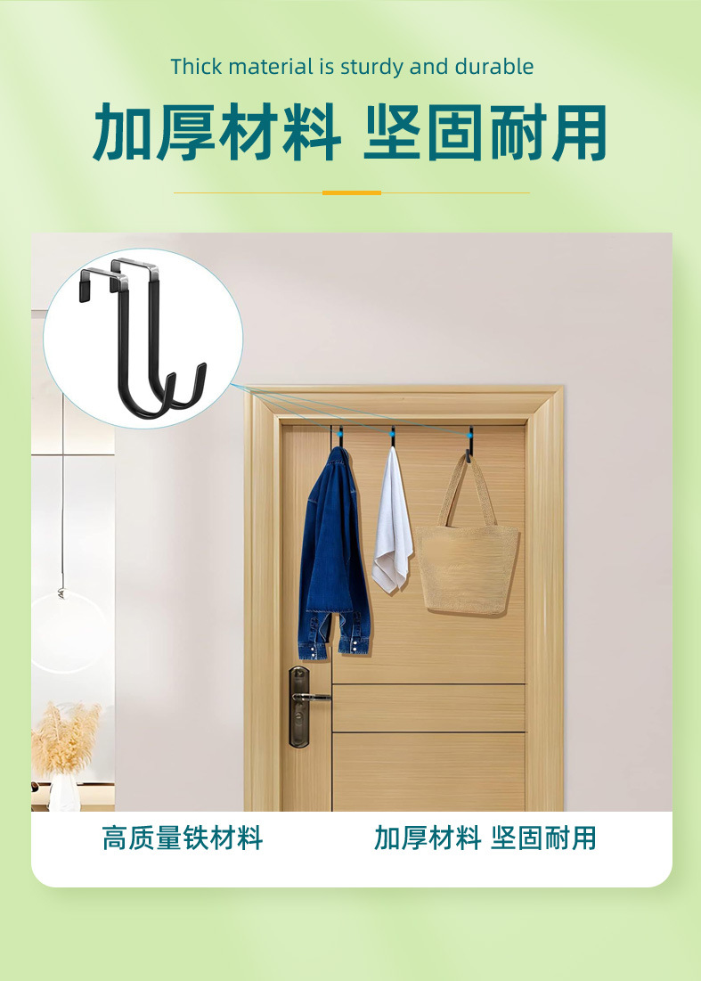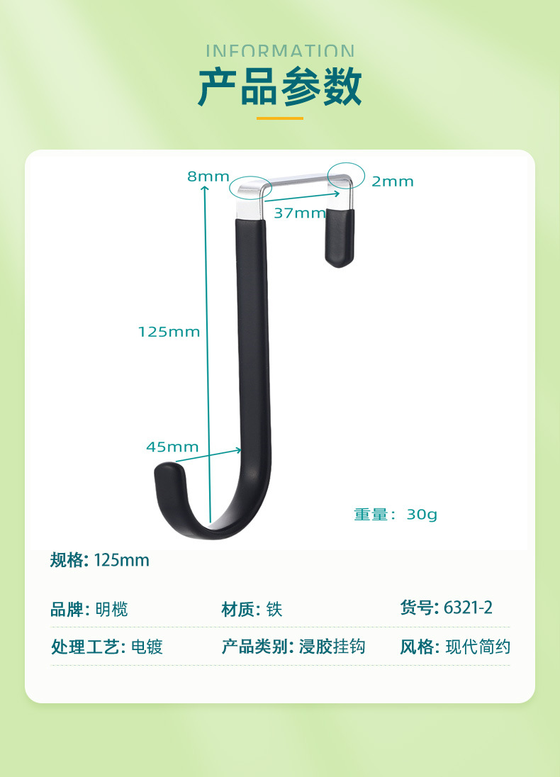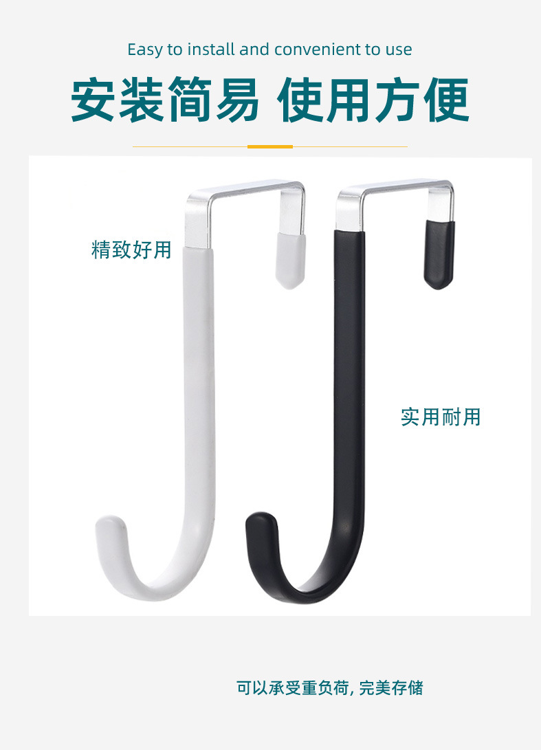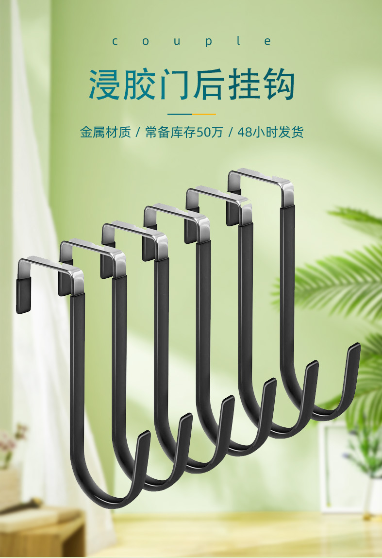 免打孔创意门后衣服挂钩免钉挂勾浸胶防滑家用金属单钩衣帽挂钩