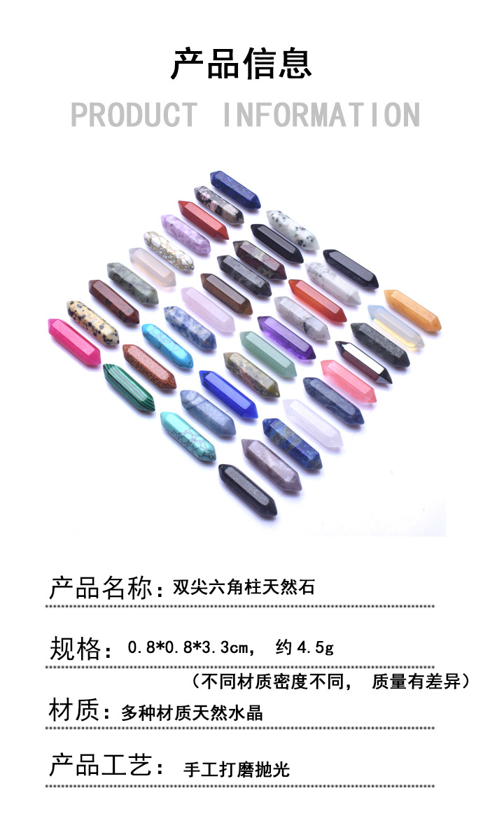 Трансграничная горячая распродажа пуля натуральный камень кристалл шестиугольный столб двойной остроконечный шестиугольный призм йога камень голый камень ювелирные украшения