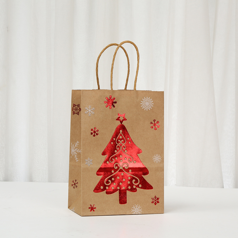 Новый Бронзовый Рождественский ручной бумажный пакет Лось Снежинка Рождественская елка Подарок в канун Рождества Коричневый подарок из крафт-бумаги