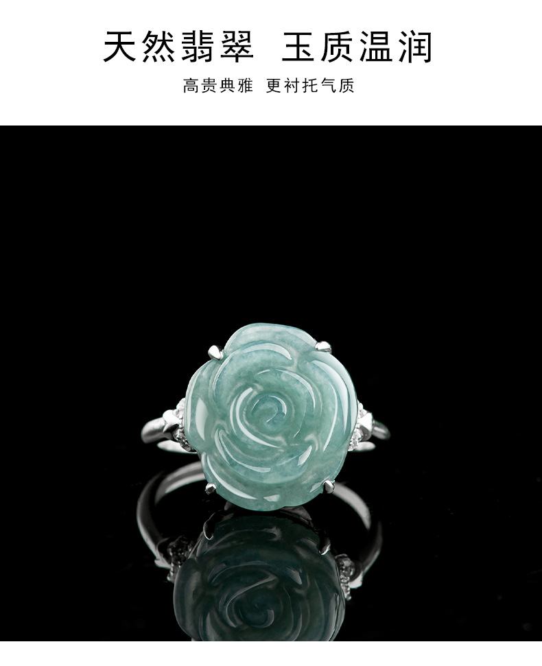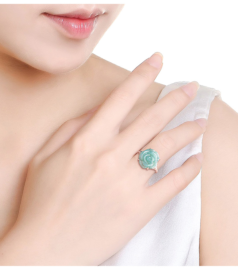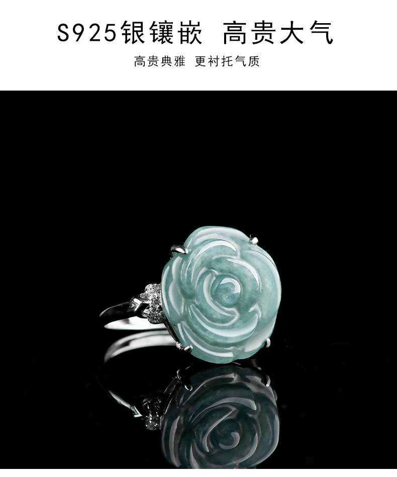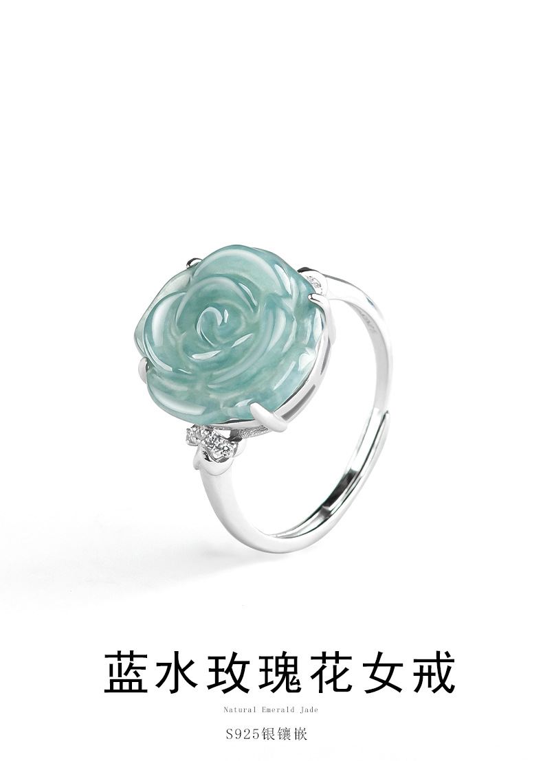 S925 серебряные инкрустированные натуральные товары нефрит синяя вода Роза кольцо лед нефрит модное кольцо женское кольцо регулируемое