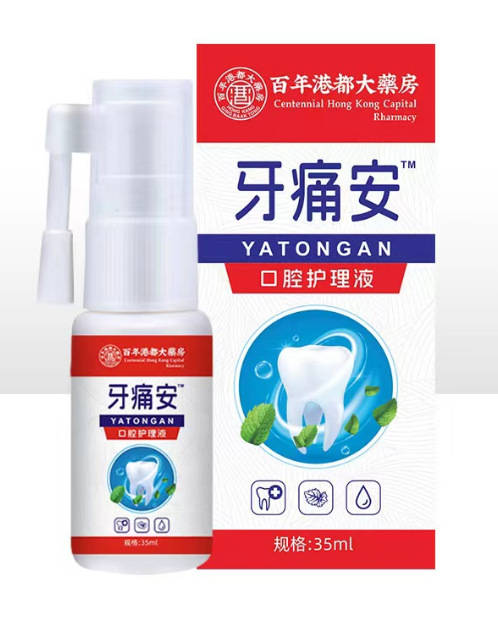 Гонконгский спрей для яинга; Спрей Nanjing Tongrentang Lejia Laopu Tooth An; Успокаивающее средство для ухода за полостью рта Lejia Laopu; Зубная боль Гонконга; Очищающая вода для зубов Lejia Laopu; Токио-зуб спрей; Yunnan Materia Medica Jisheng, облегчение боли в зубах; Фармацевтические боли в зубах Хаоши для врачей; Спрей от боли в зубах Таиланда Нань Будды; Облегчение боли в зубах столетнего Гонконгского университета; Очищающая вода для зубов Doctor из Гонконга; Облегчение боли в столетнем порта