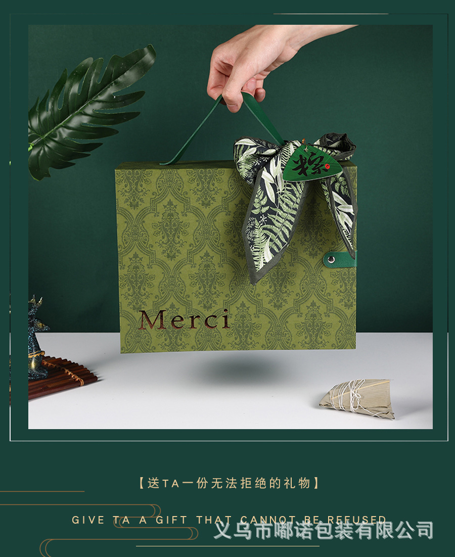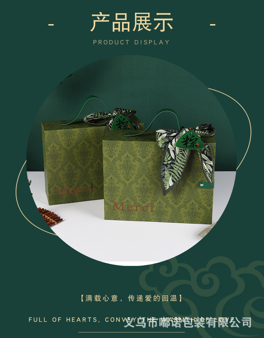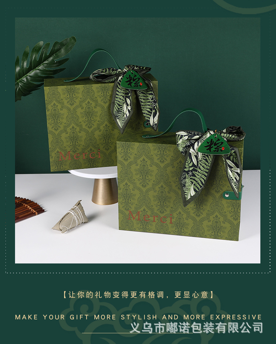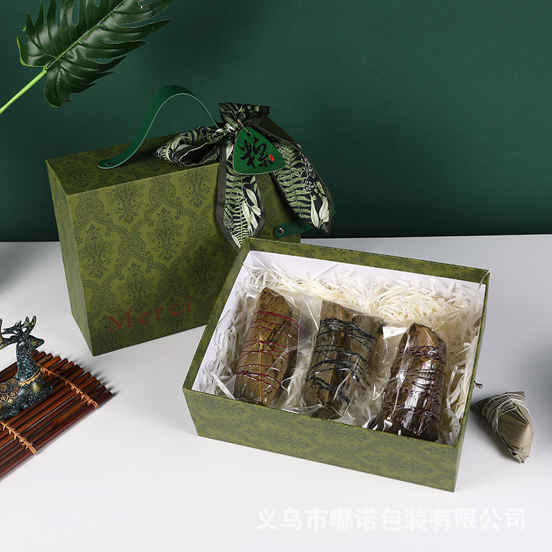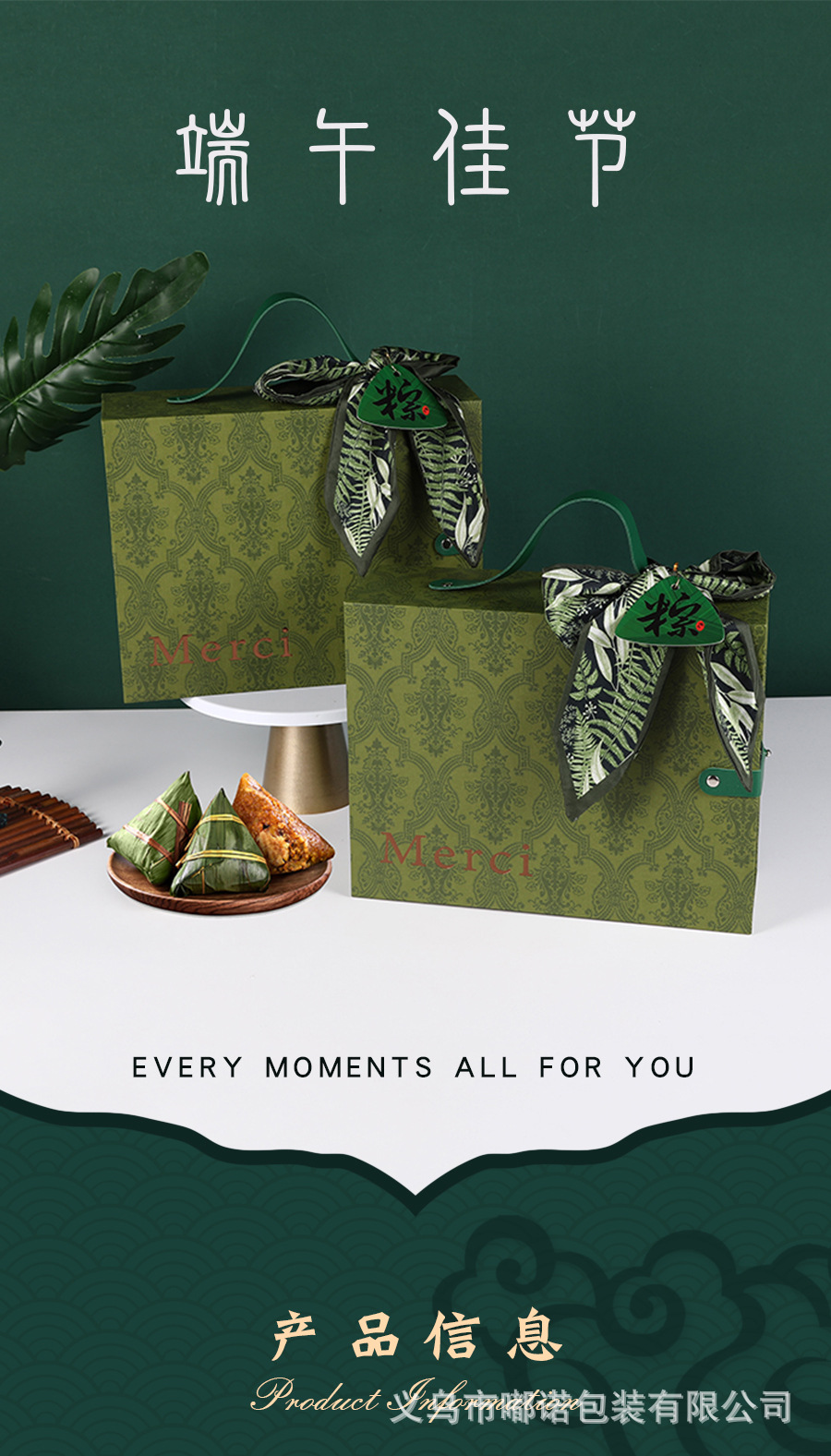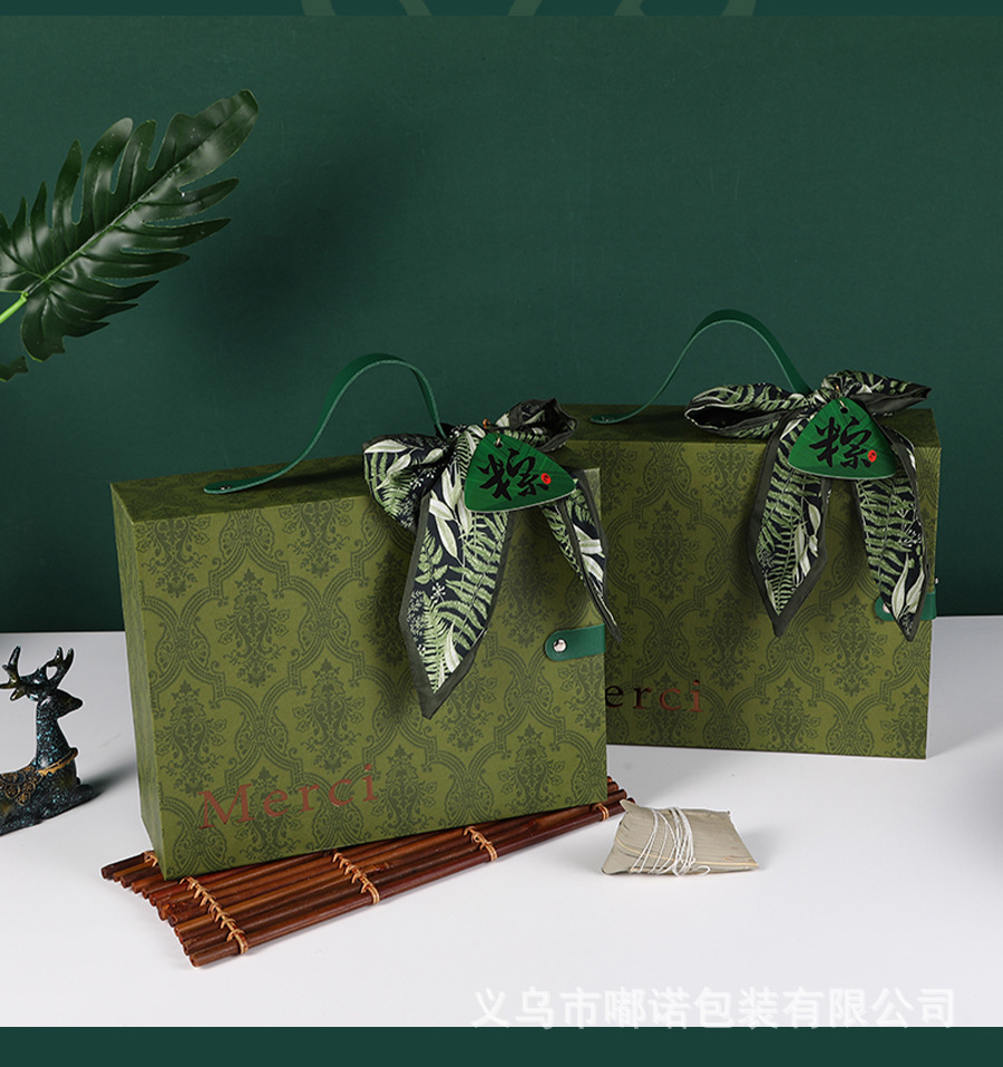 Оптовая продажа подарочных коробок для зонгзи на фестиваль драконьих лодок 2025 года, зеленые, портативные, для соленых утиных яиц, пустые коробки для упаковки с логотипом