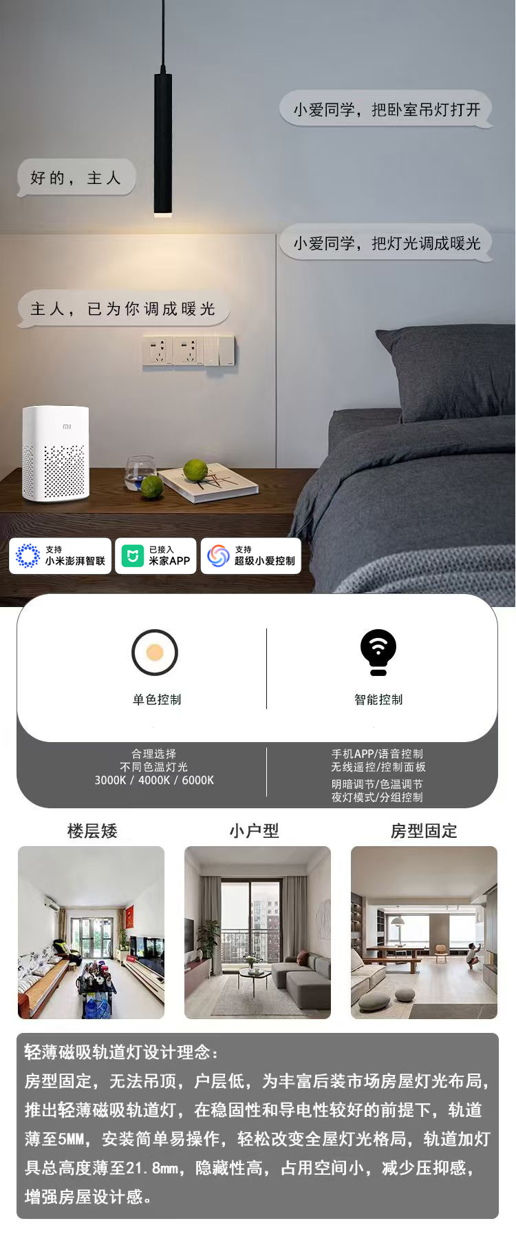 Ультратонкий Магнитный Трековый прожектор с открытым креплением, 5 мм, для домашней гостиной, без потолка, полный спектр, Интеллектуальный светодиодный прожектор без владельца