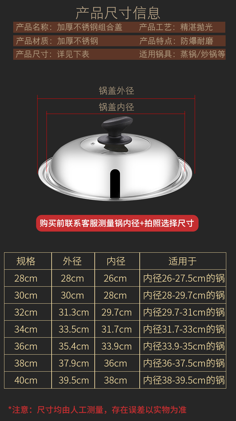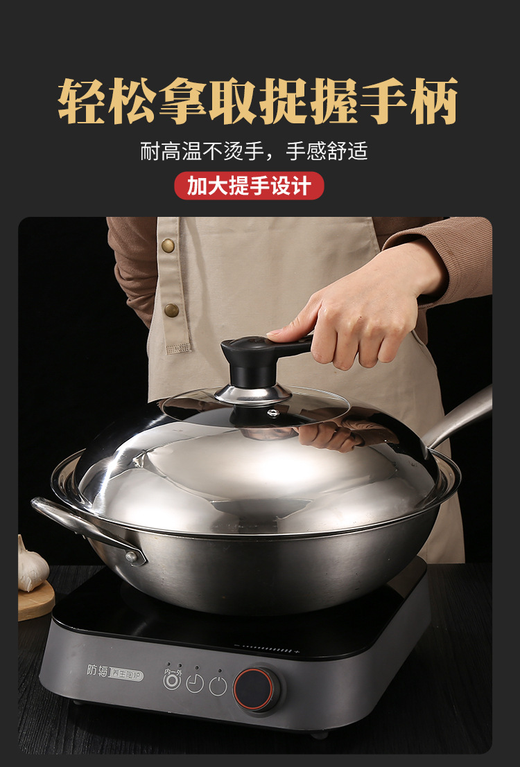 Оптовая Продажа с фабрики Крышка для горшка из нержавеющей стали взрывозащищенное стекло визуальная комбинированная крышка вок плоское дно большая крышка для горшка 28 см-40 см