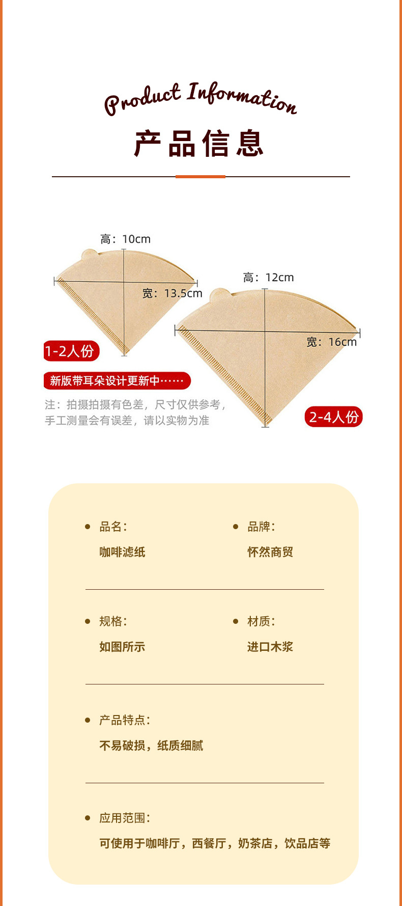 V-образный фильтровальная бумага кофе V-образный фильтровальная бумага 1-4 конуса древесной массы ручно-заваренные вручную спецификации чашки фильтра кофе