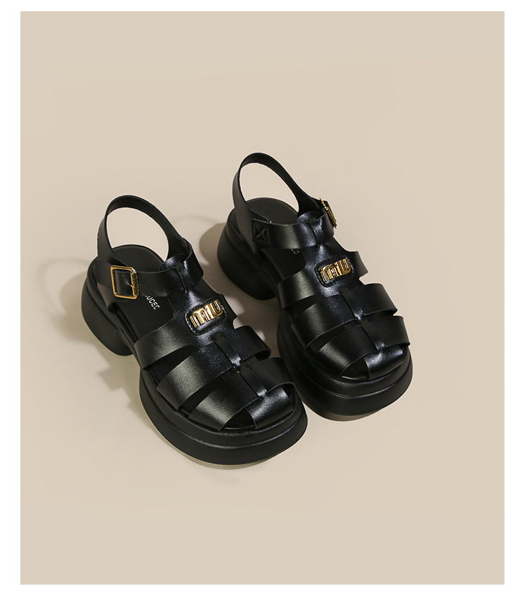 Римские сандалии с закрытым носком женские 2023 летние новые тканые туфли в клетку для свиней на толстой подошве с пряжкой полая пляжная обувь
