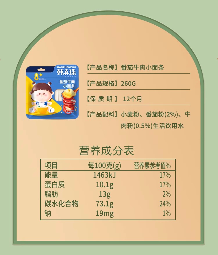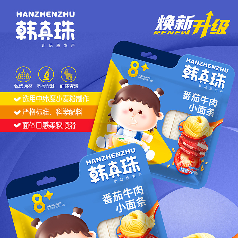 Детская маленькая лапша Han Zhenzhu Питательная томатная говядина Морковь Независимая упаковка 260 г Пшеничная мелкая лапша в мешках