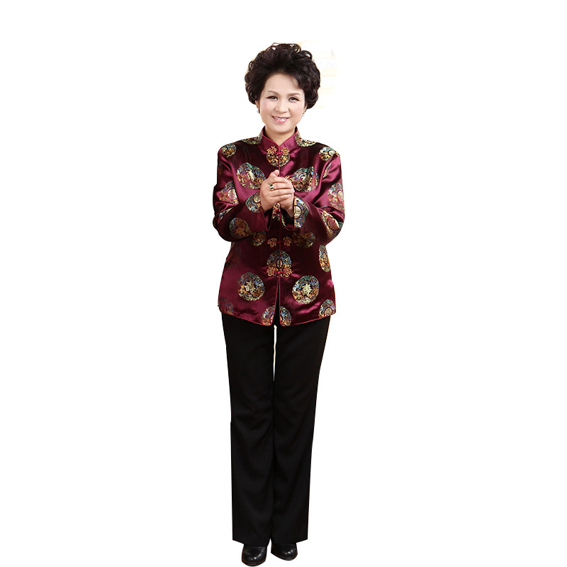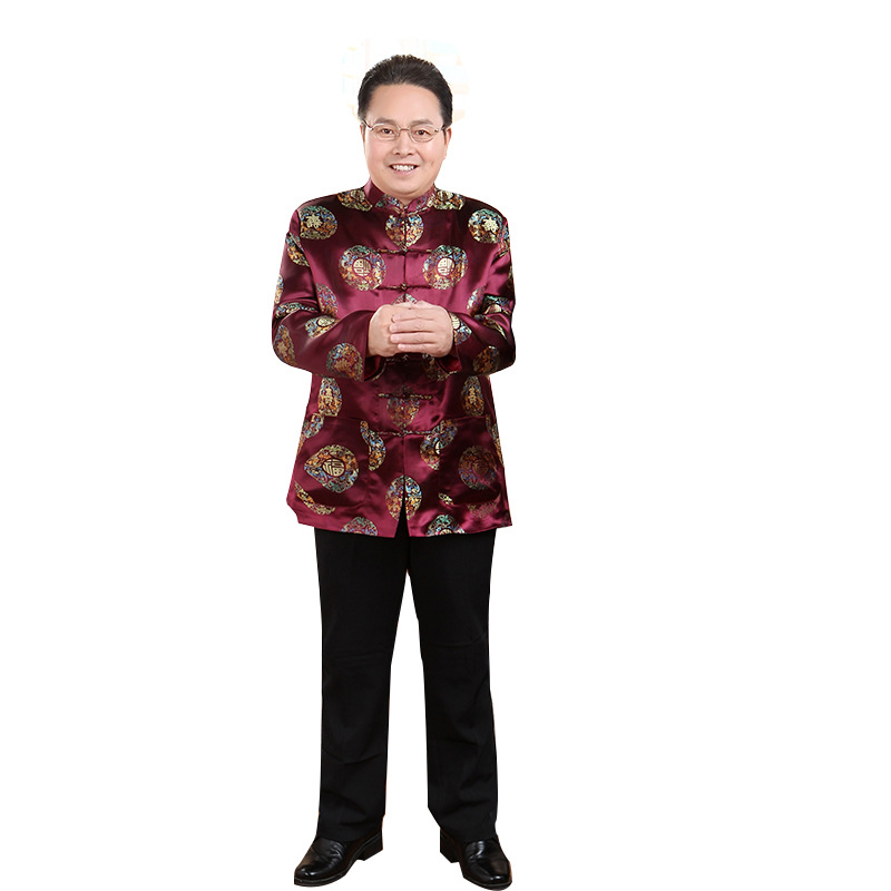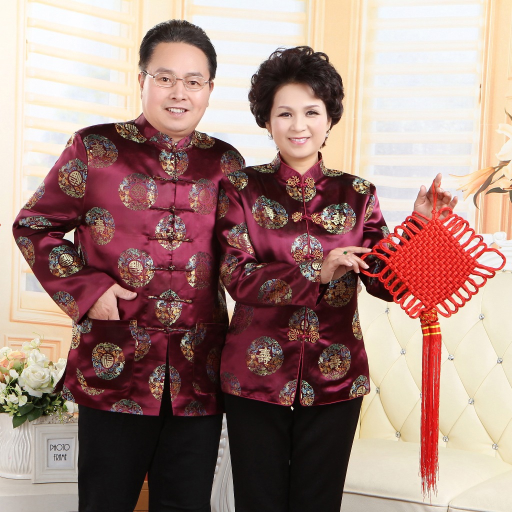 Осенний костюм для среднего и пожилого возраста 2383-6 Парный костюм Тан для мужчин и женщин с длинным рукавом Китайское платье на день рождения для пожилых людей Тонкое пальто