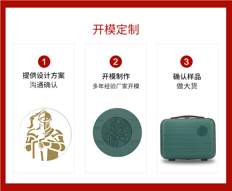 我们拥有丰富的拉杆箱定制生产经验,支持大量批发、来图来样定制、OEM贴牌定制。