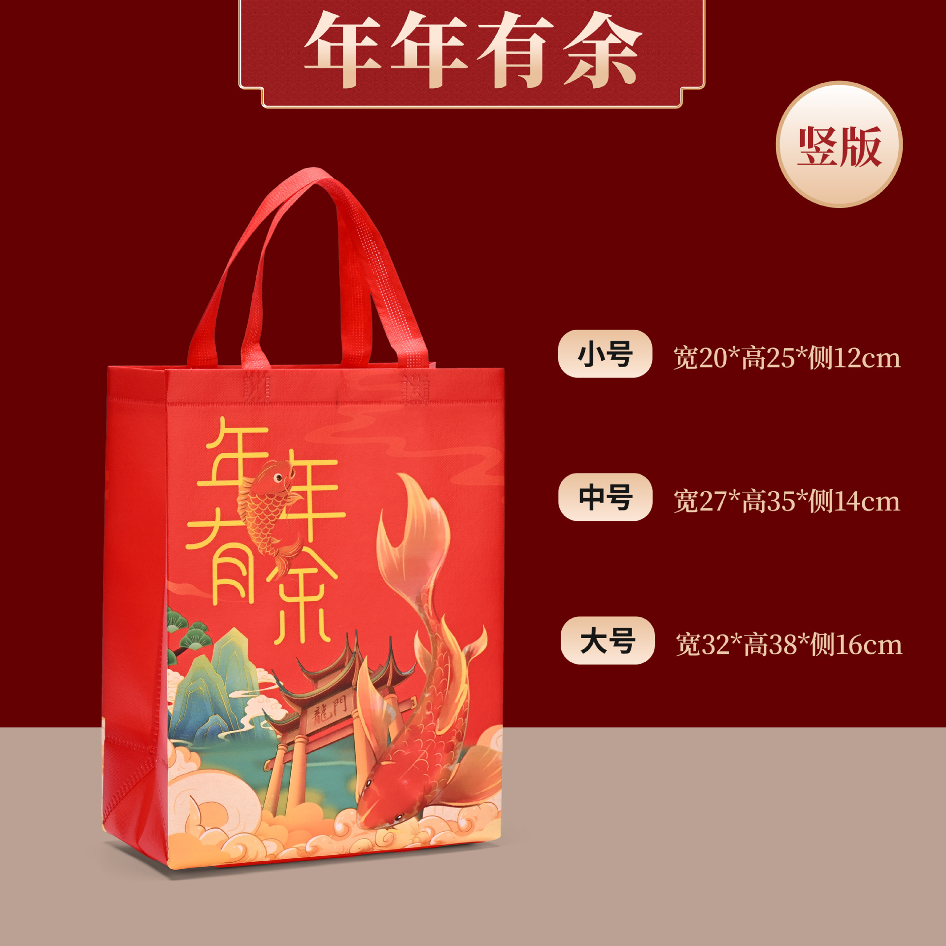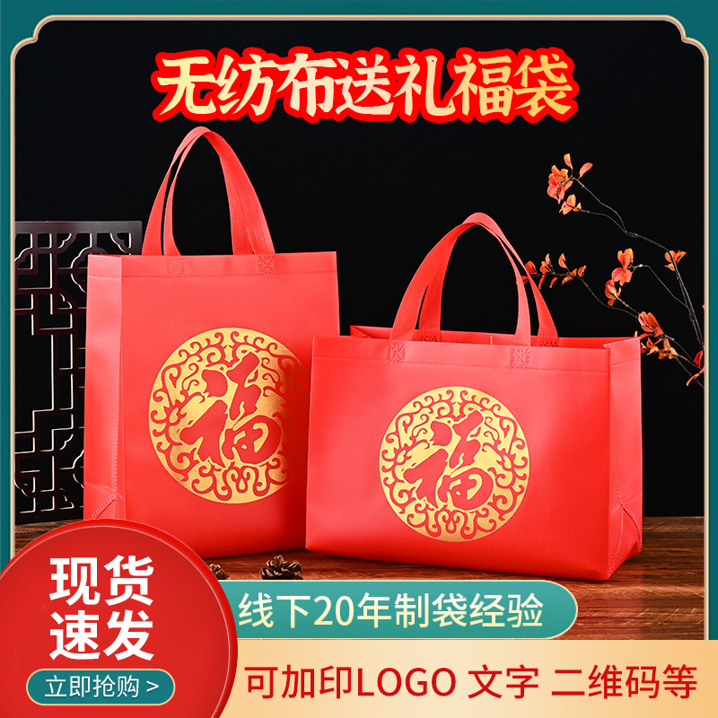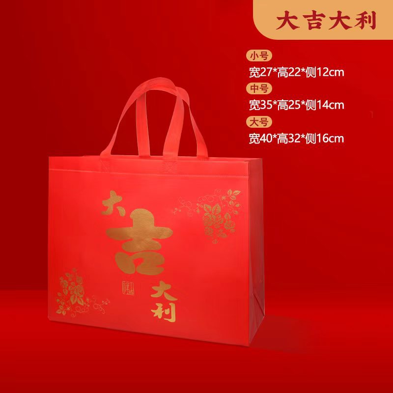 Большая красная подарочная сумка из нетканого материала с символикой счастья и радости, сумка-тоут для свадебных и новогодних подарков, сумка для покупок, подарочная сумка для ответных подарков.